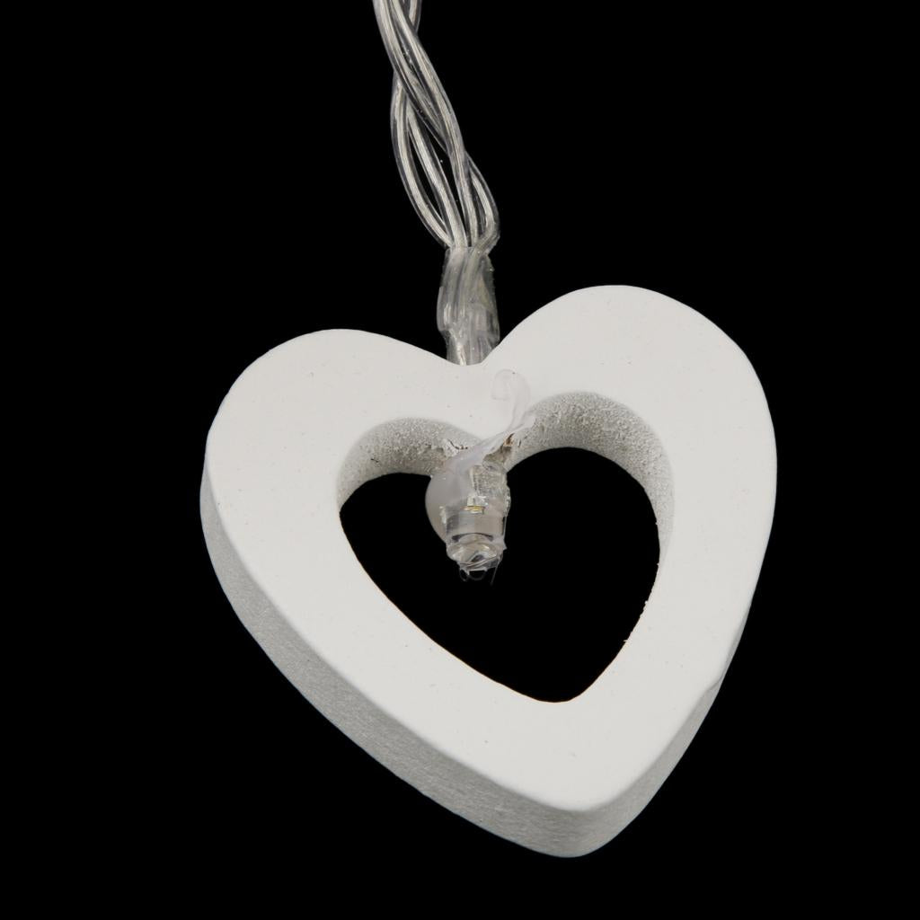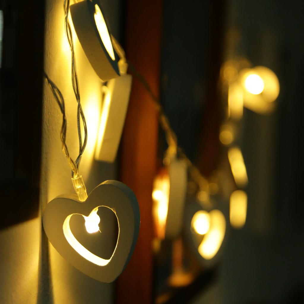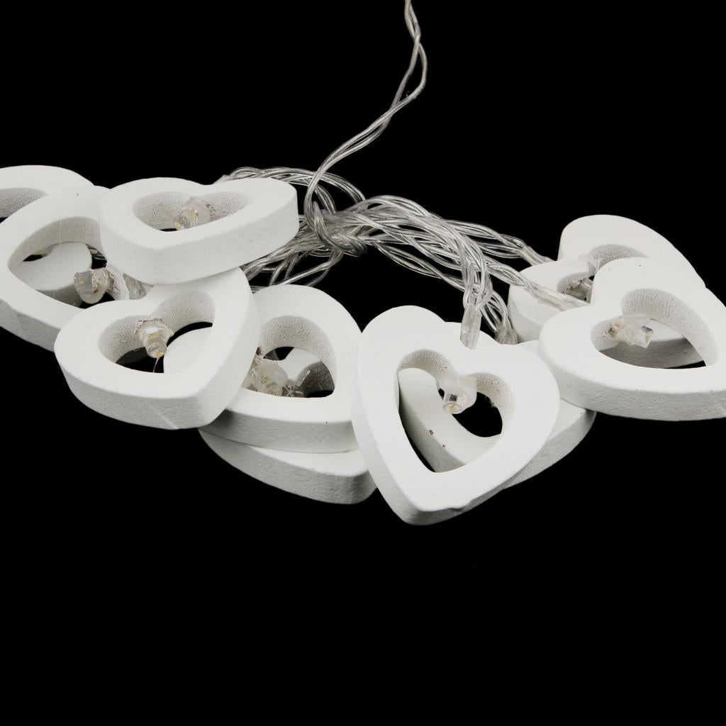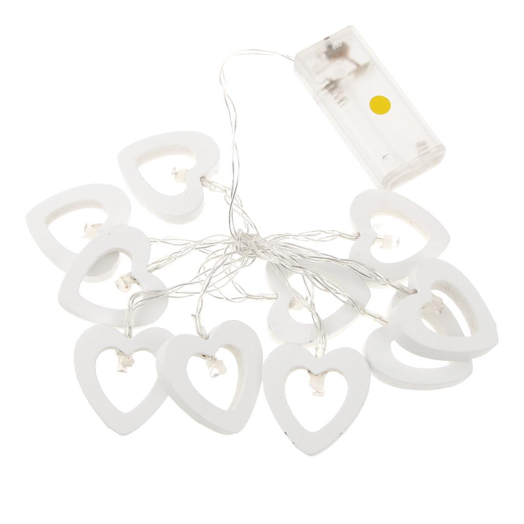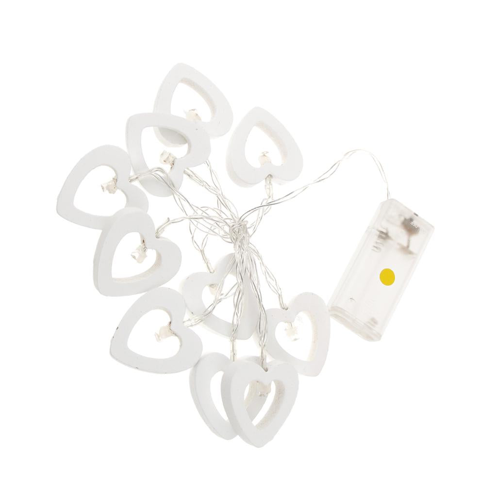 Romantic Wood Heart Shape Battery 10 Bulbs Operated Wire String Fairy Lights