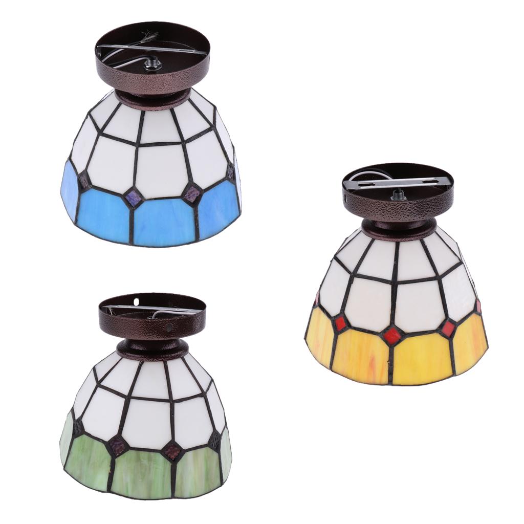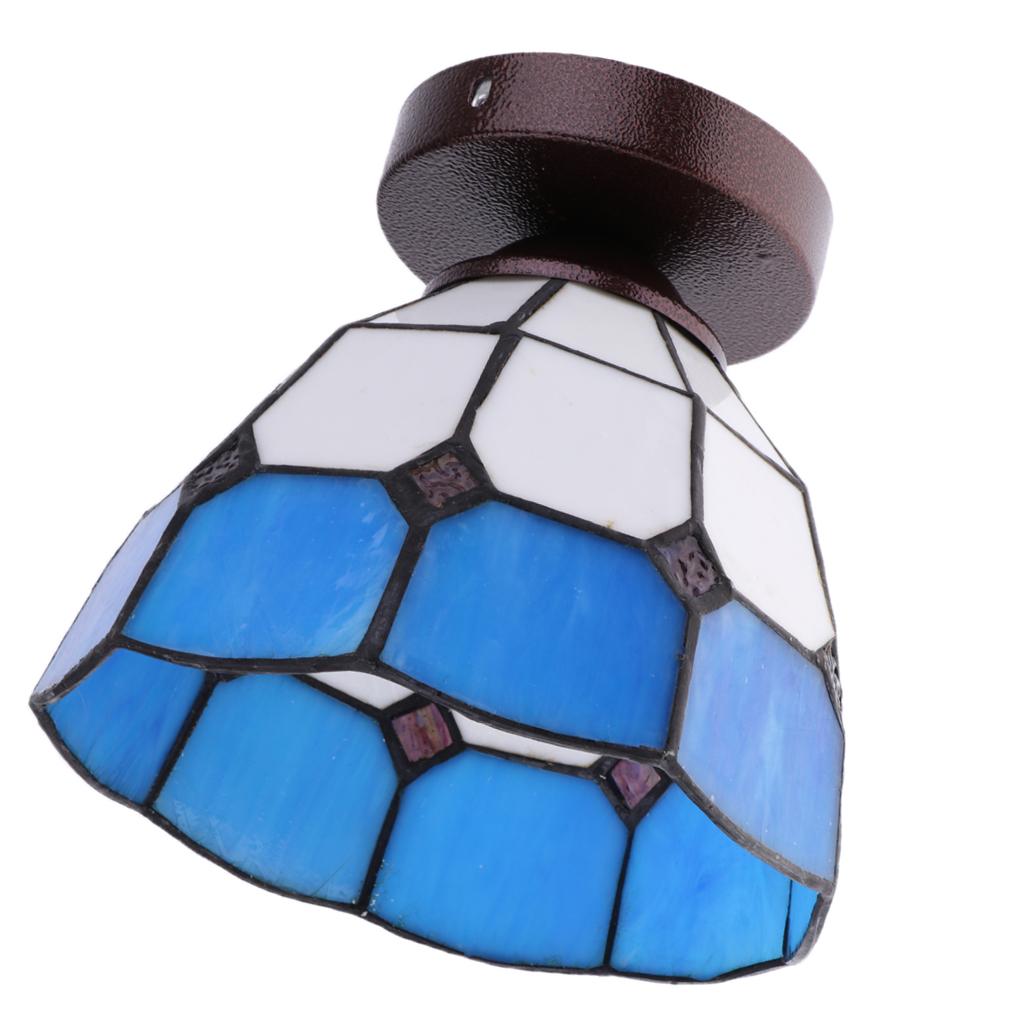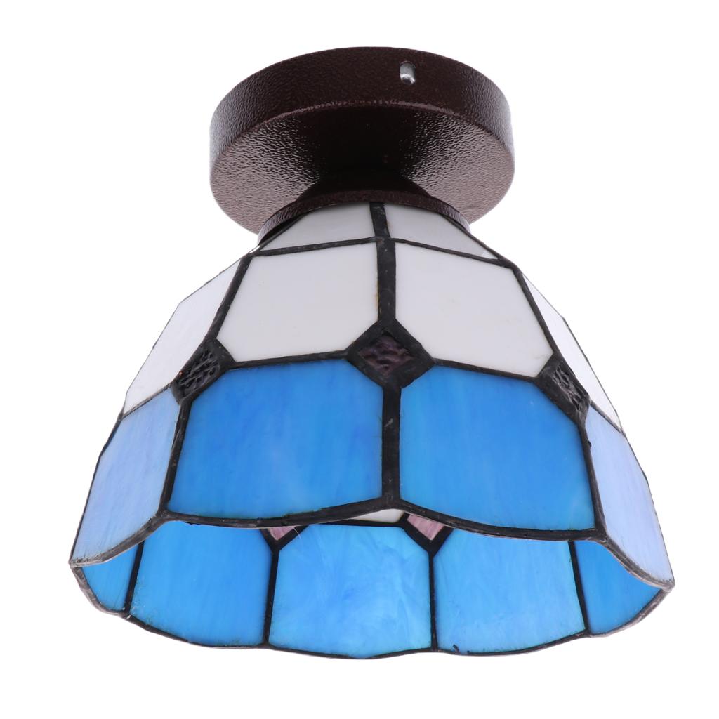 Mediterranean style stained glass flush mount ceiling lampshade.