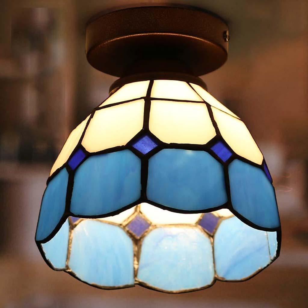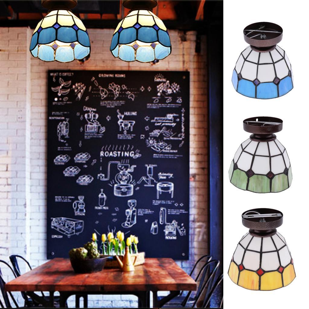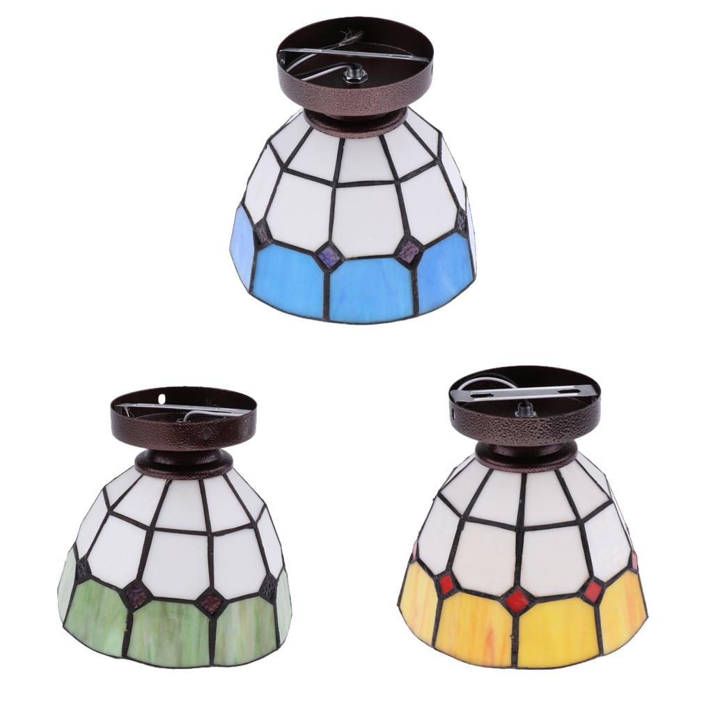 Mediterranean style stained glass flush mount ceiling lampshade.