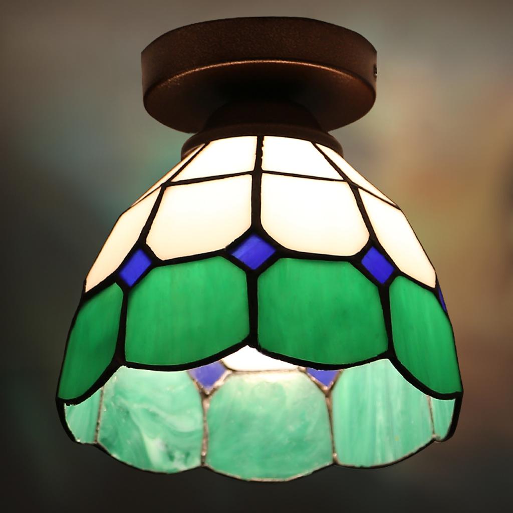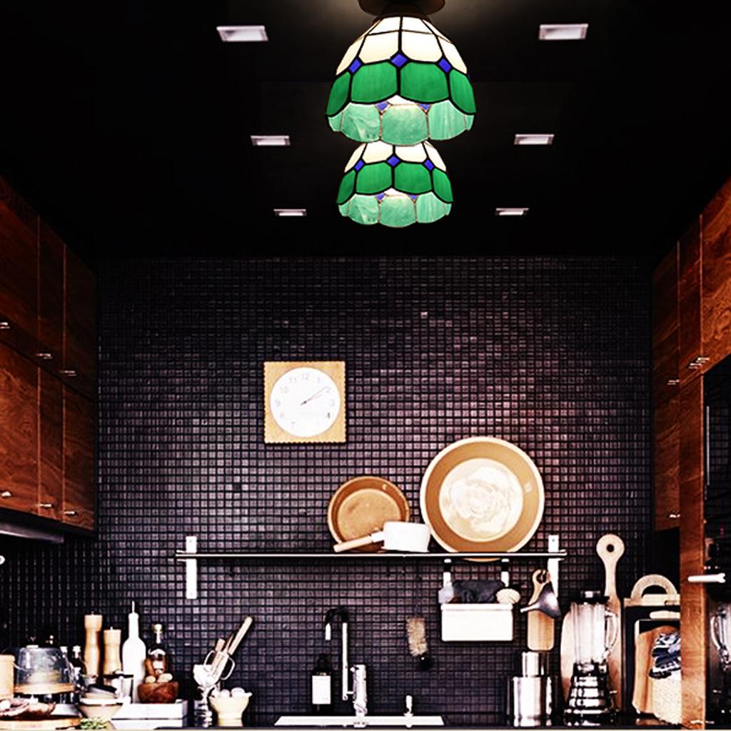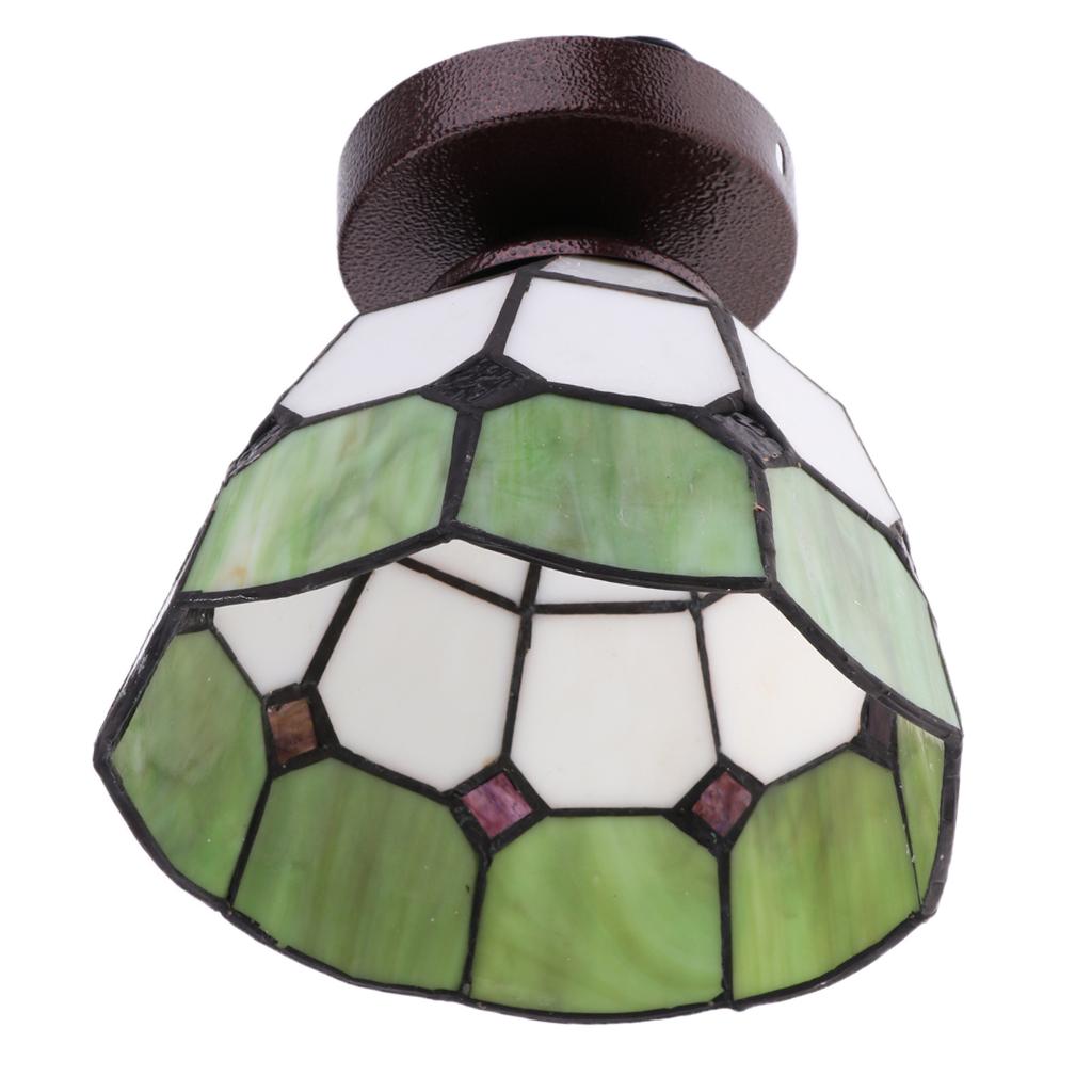 Stained Glass Mediterranean Style Flush Mount Ceiling Light Lampshade Green