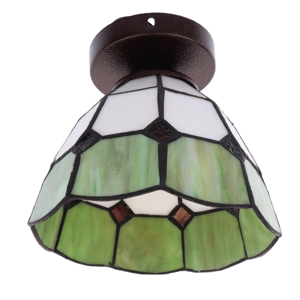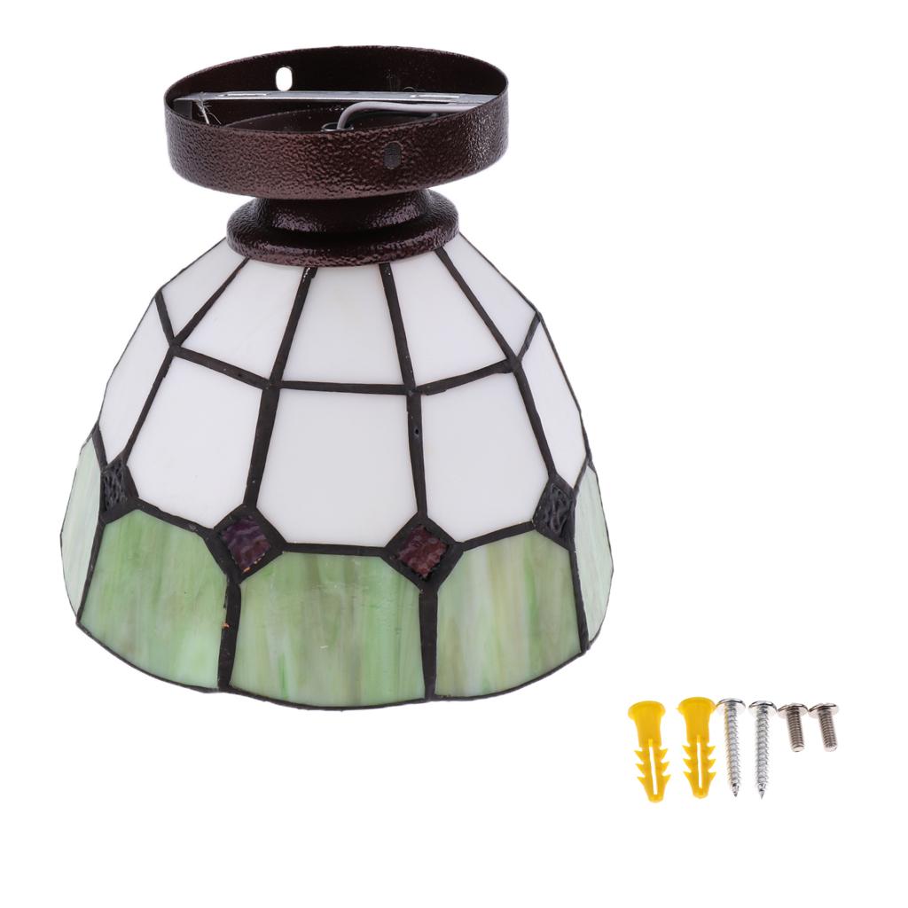 Mediterranean style stained glass flush mount ceiling lampshade.
