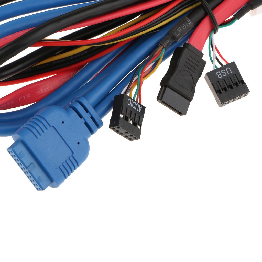 Connect interface board: a 20PIN 3.0 cable, a SATA data cable, an audio cable, a Dupont 2.0 line, a big 4PIN power cord