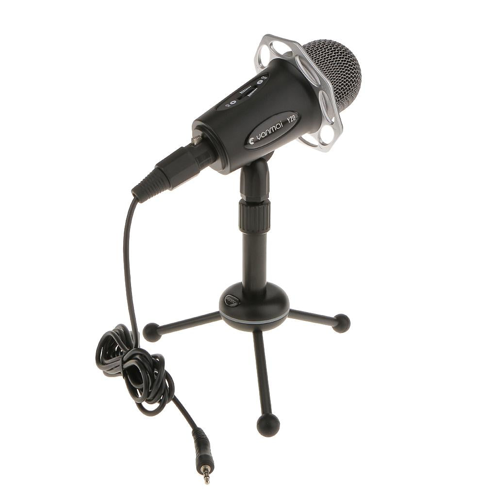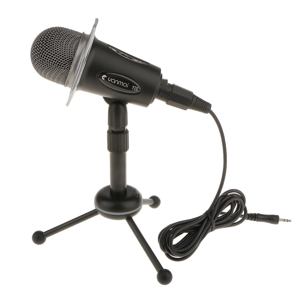 Computer 3.5mm Studio Condenser Microphone Recording w/ Stand Black
