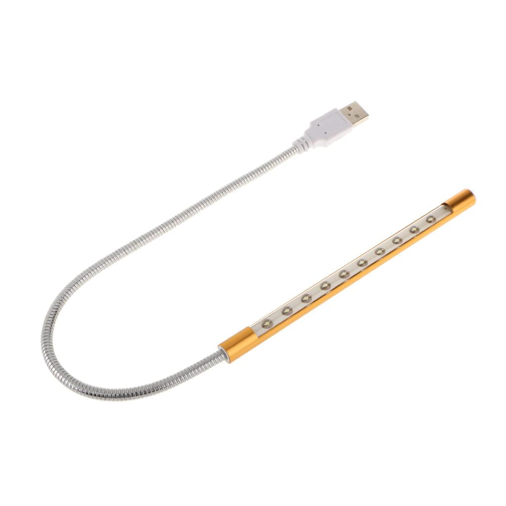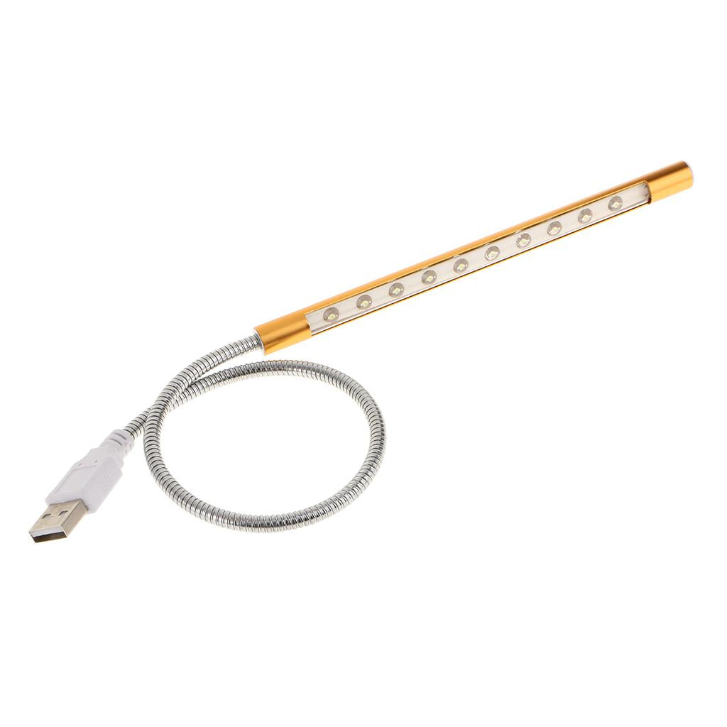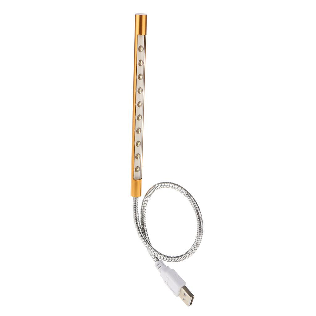 Flexible 10-LED Bulb USB Light Laptop Keyboard Reading Night Lamp Gold