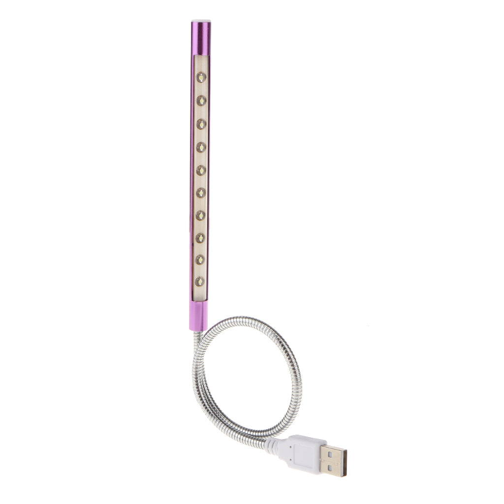 Flexible 10-LED Bulb USB Light Laptop Keyboard Reading Night Lamp Purple