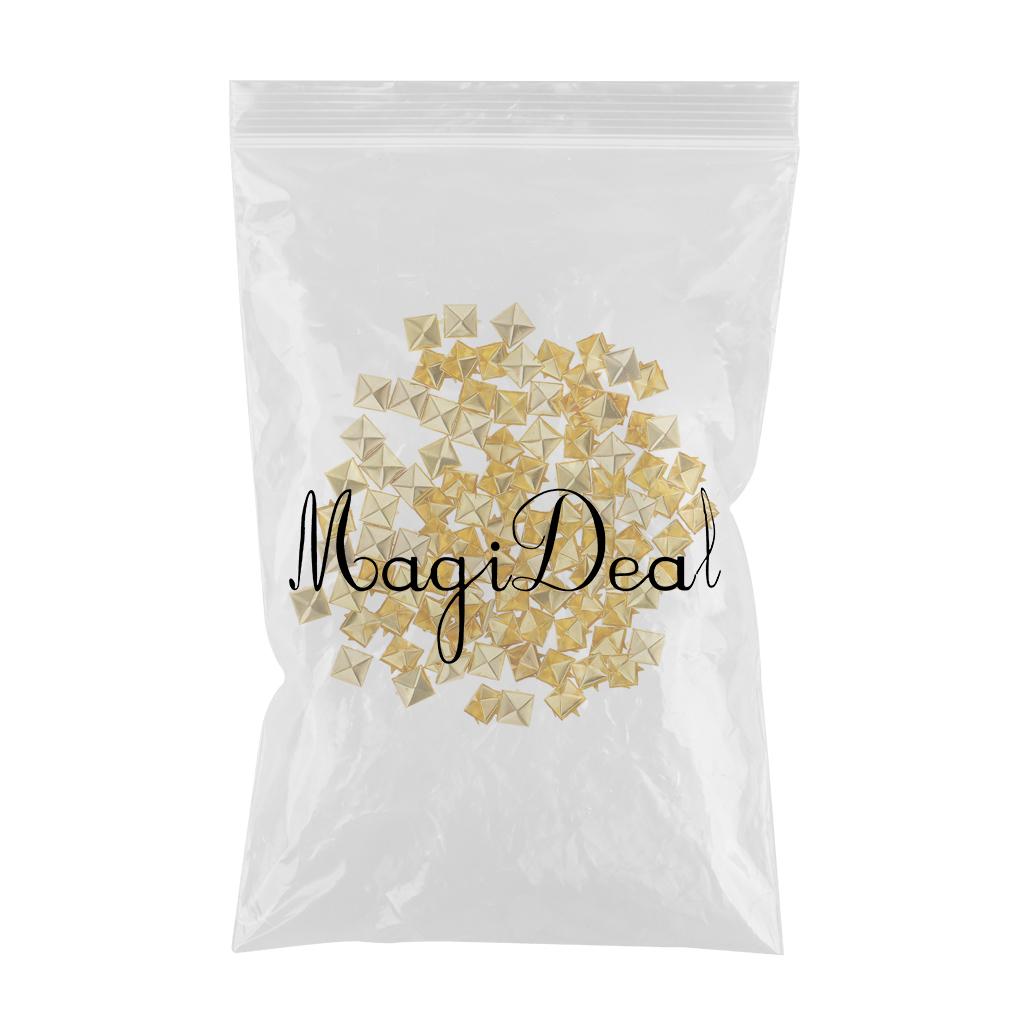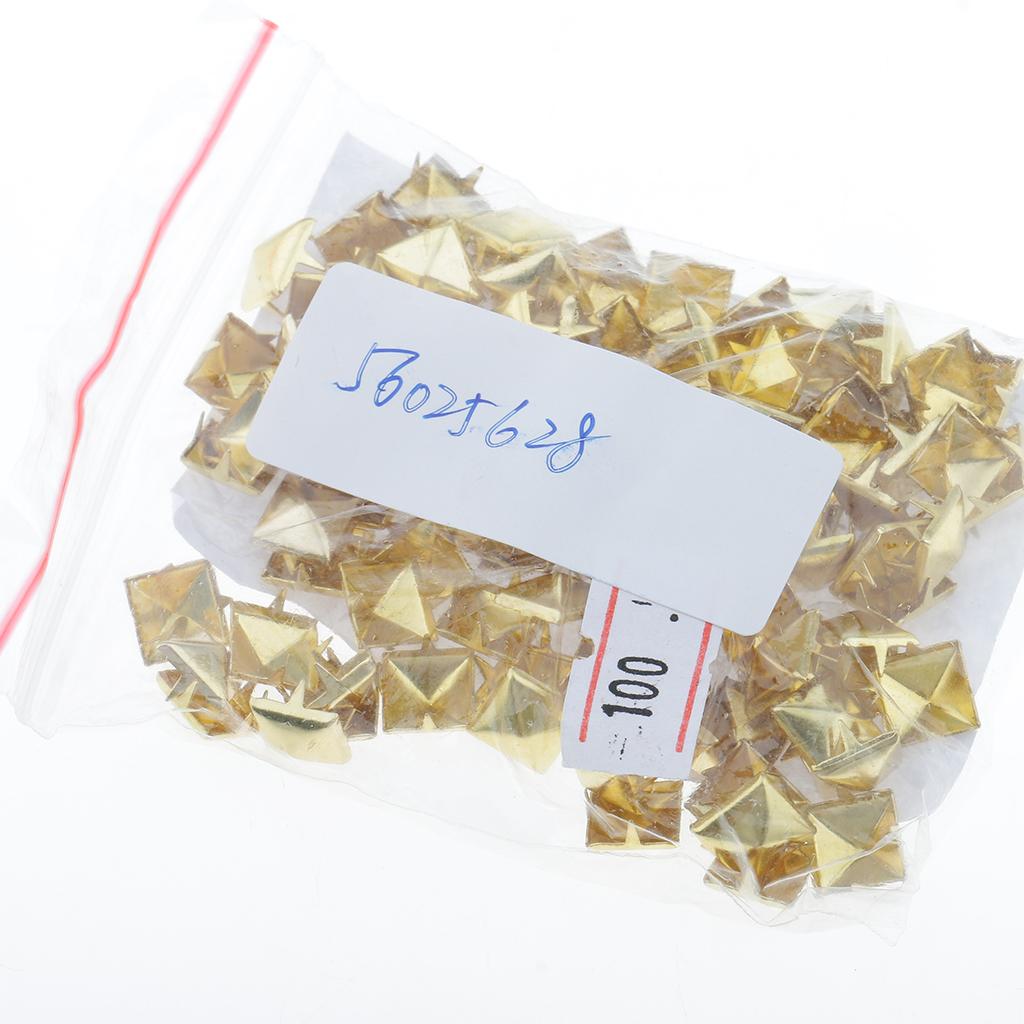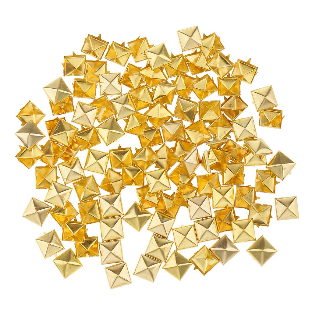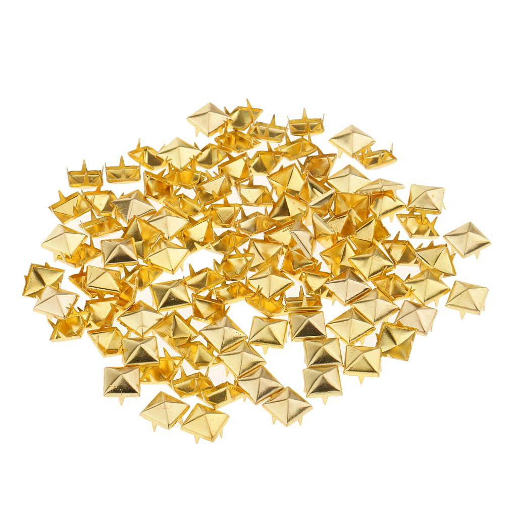 100Pcs Square Pyramid Rivet Studs Spike Screw Craft DIY Embellishment Gold