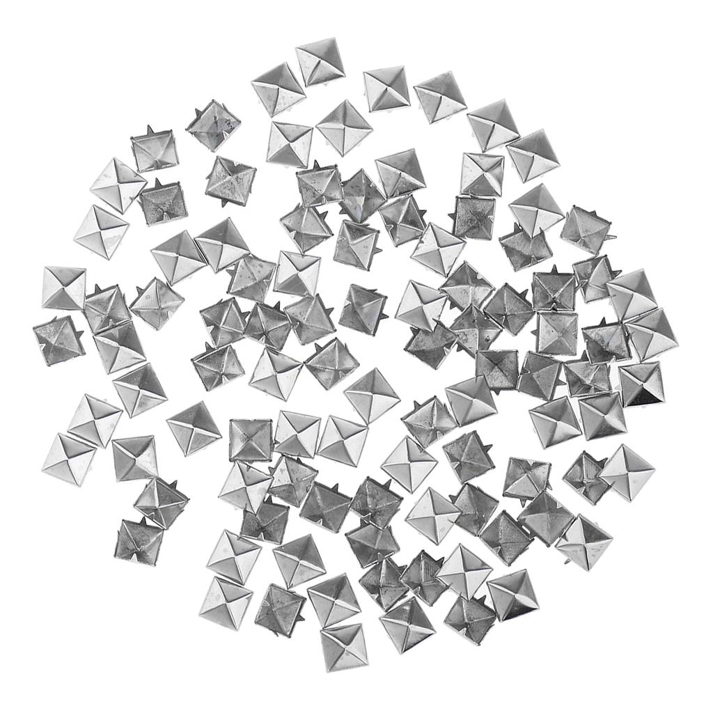 100Pcs Square Pyramid Rivet Studs Spike Screw Craft DIY Embellishment Silver