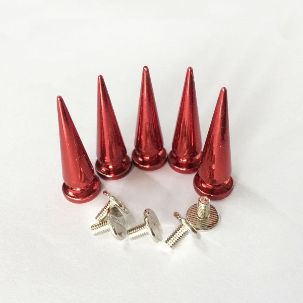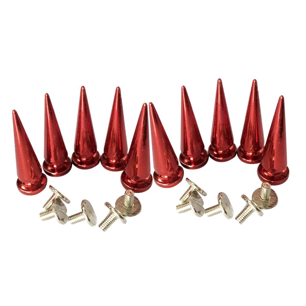 10pcs Copper Cone Screwback Stud Leather Craft Spike Rivets Red