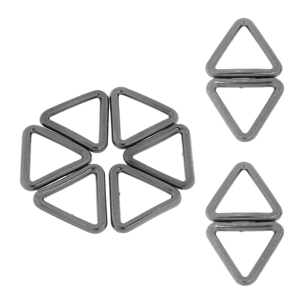10pcs Metal Hollow Closed Triangle Rings Loop Connectors Buckles Grey Black