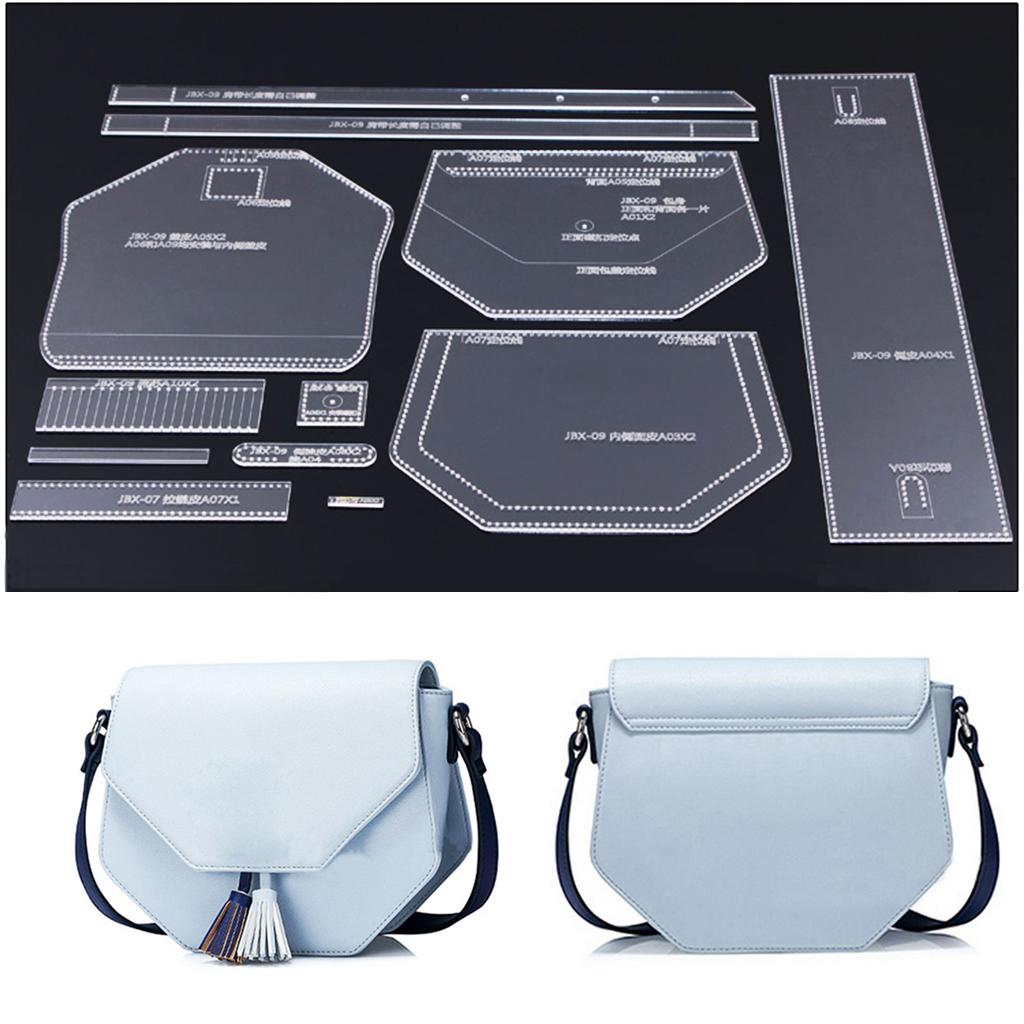12Pcs/lot Clear Acrylic Shoulder Bag Pattern Stencil Template Leather Craft DIY