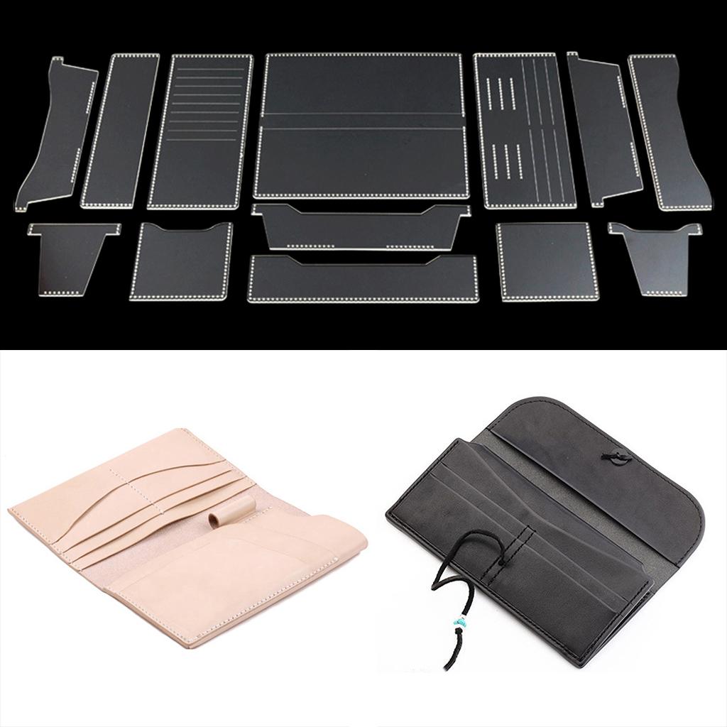 13 Pieces Transparent Long Wallet Acrylic Leathercraft Template Pattern for DIY Purse Making