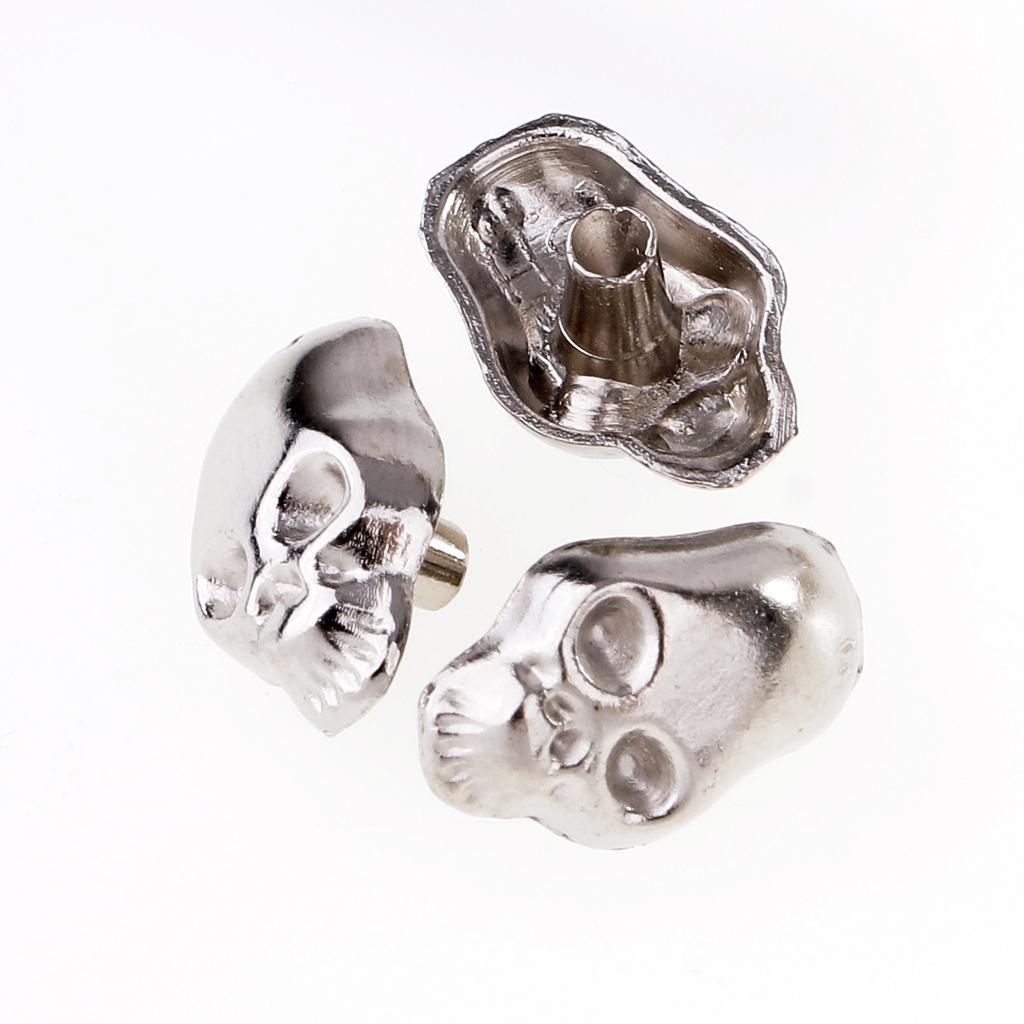 20 Sets Skull Studs Punk Rivets for Bag Shoes Leathercraft 9x14mm Silver
