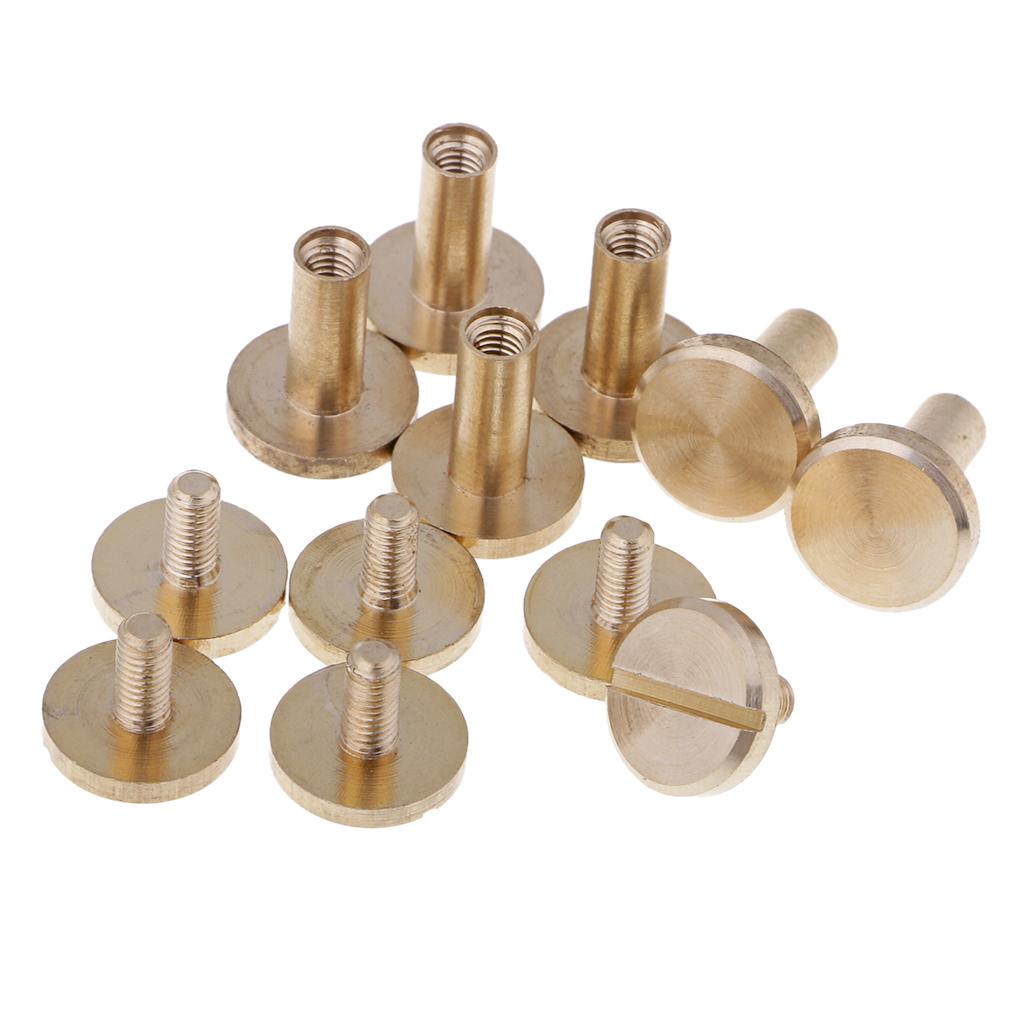 6 Sets Round Rivet Screw Studs Chicago Screw Leather Craft Gold 10mm