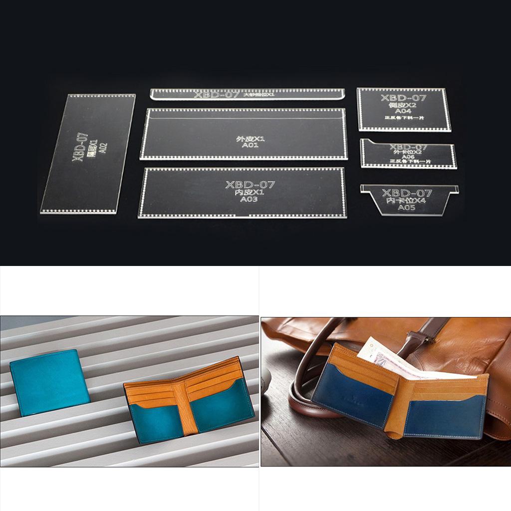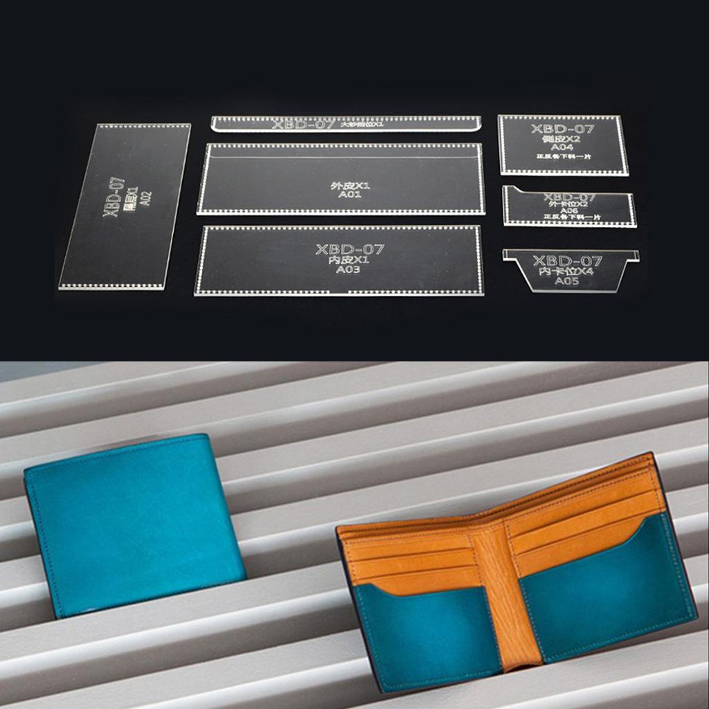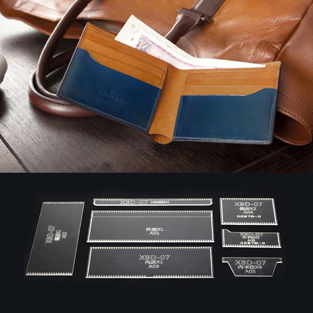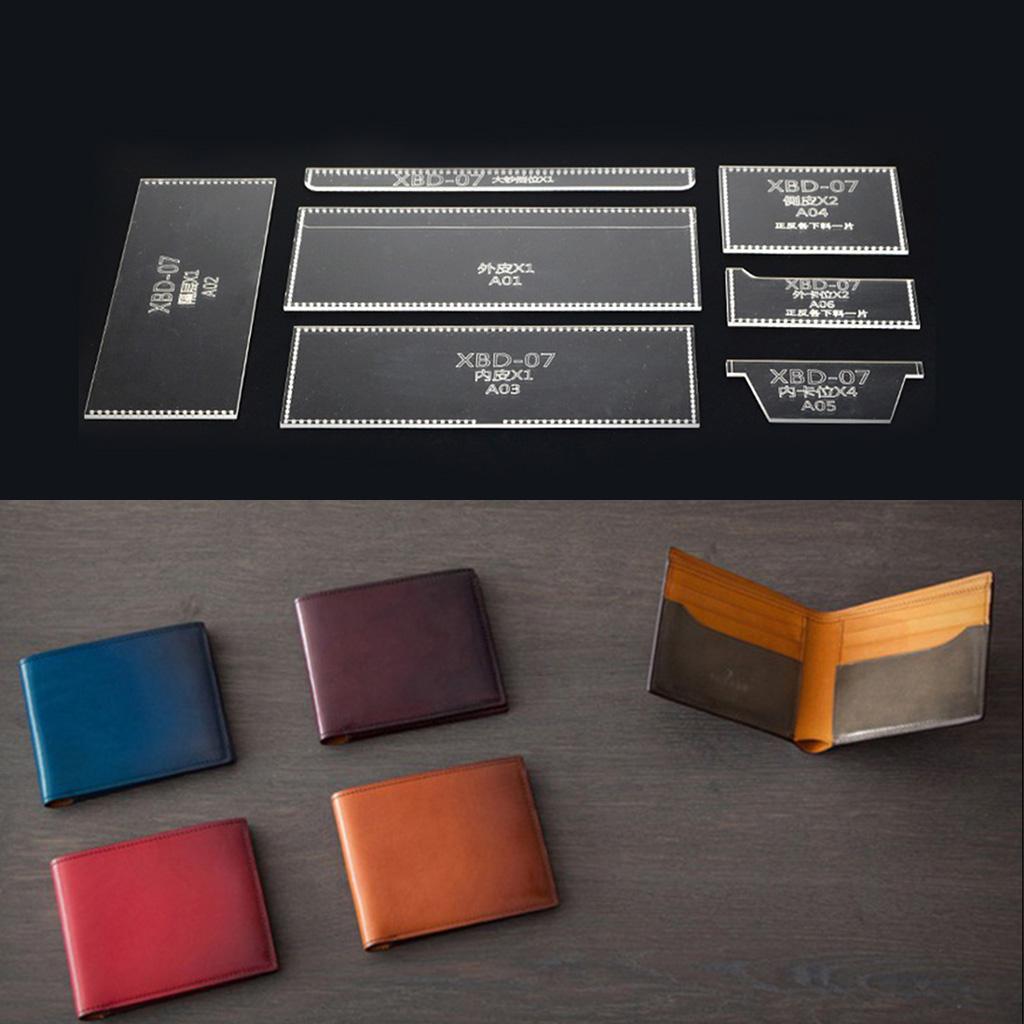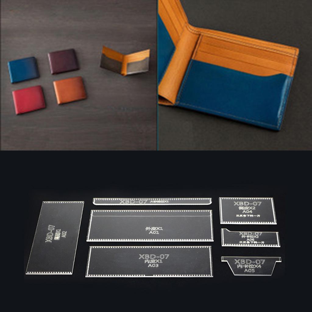 7 Pieces/Set Acrylic Purse Short Wallet Pattern Template Stencil DIY Leather Hand Craft