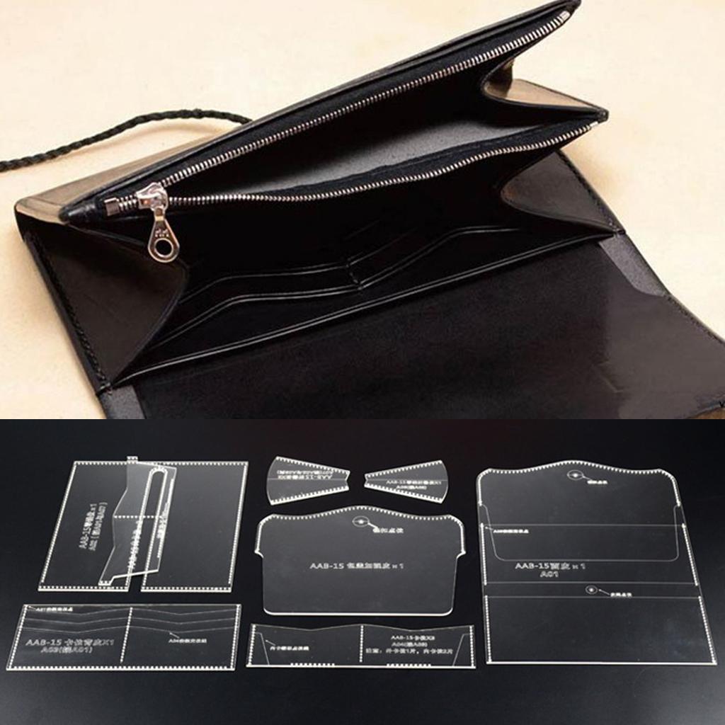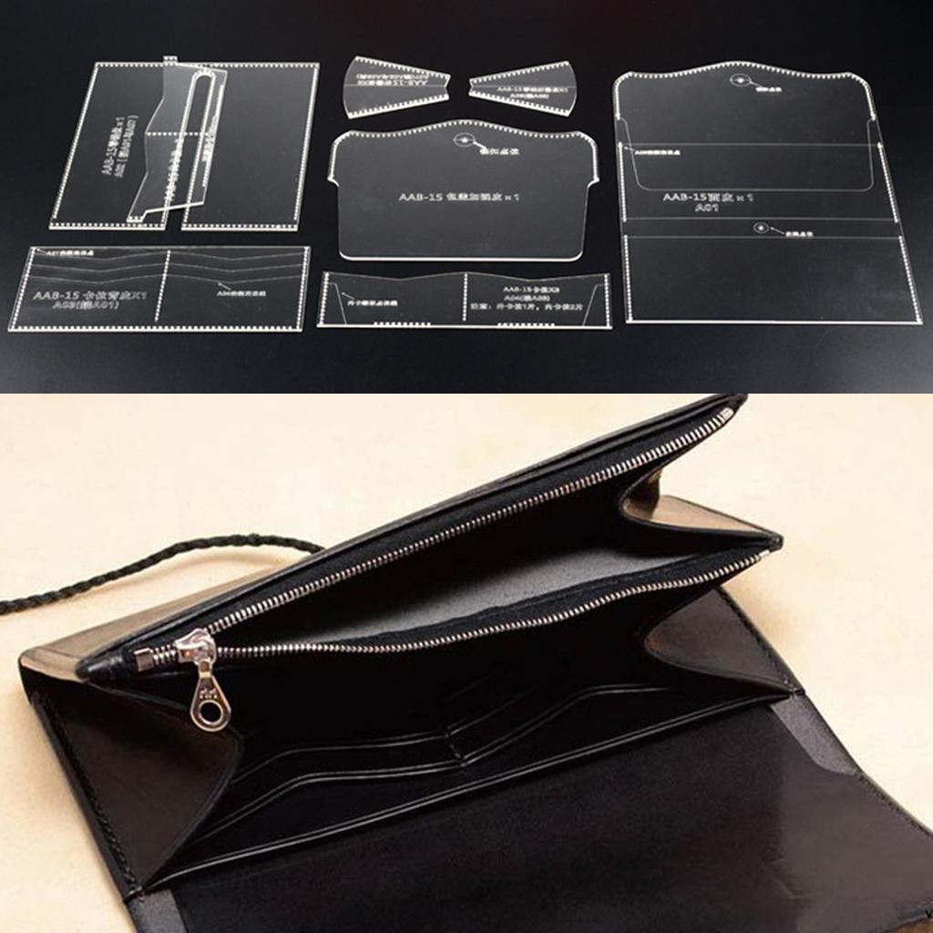 8 Pieces Acrylic Template for Handbag Purse Long Wallet Leathercraft Pattern Set