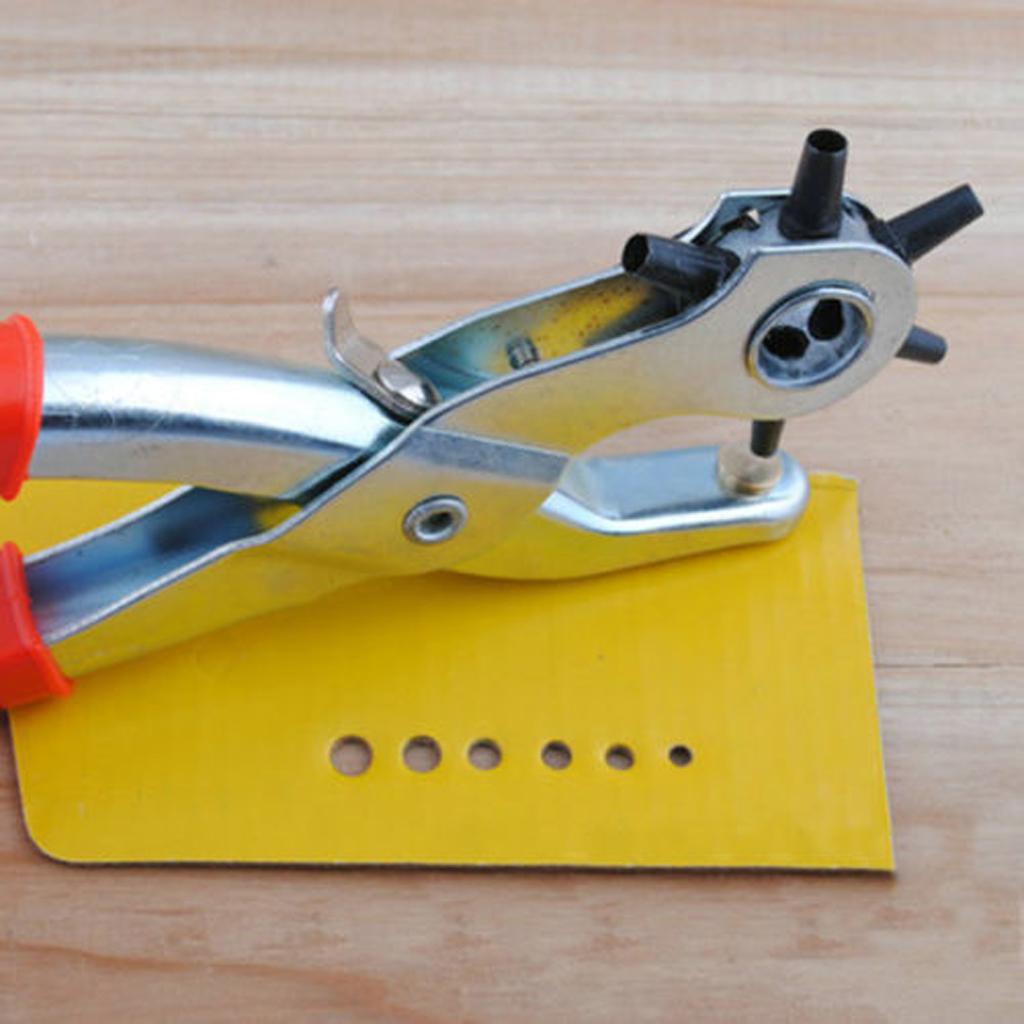 Leather Hole Punch Hand Plier with 6 Sized Tubes for Heavy Duty Belt Watch Band Holes