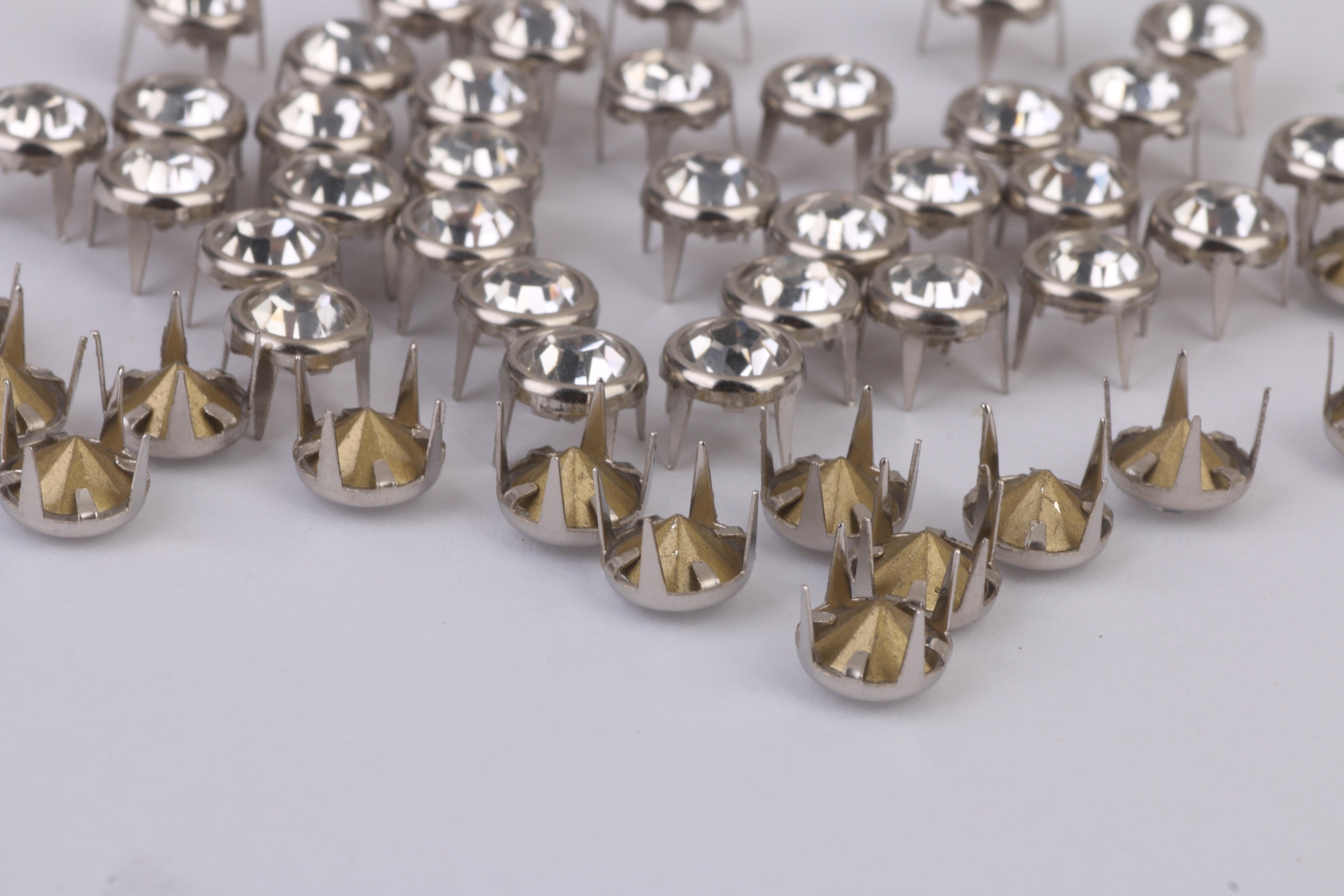 Clear round shaped studs with rhinestone and prongs