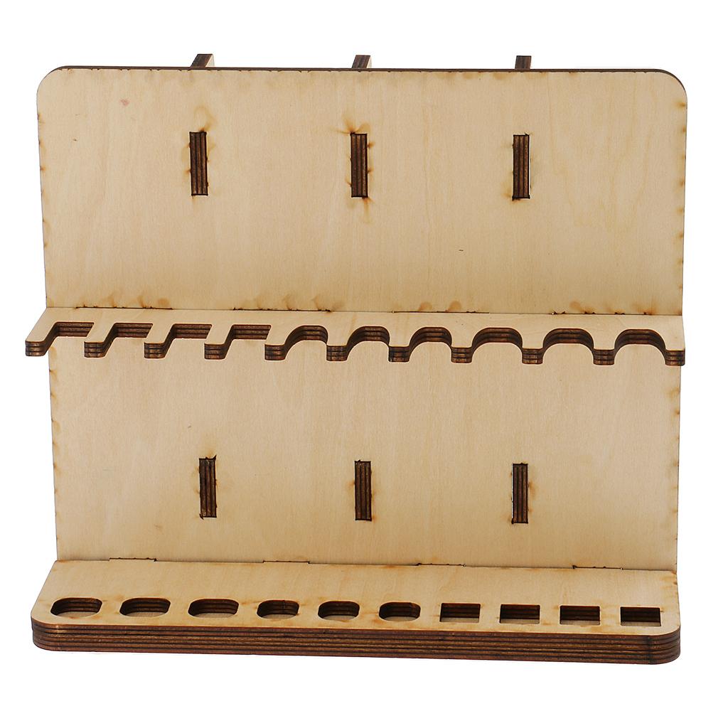 Multifunctional wooden rack for storing leathercrafts tools and other household tools.