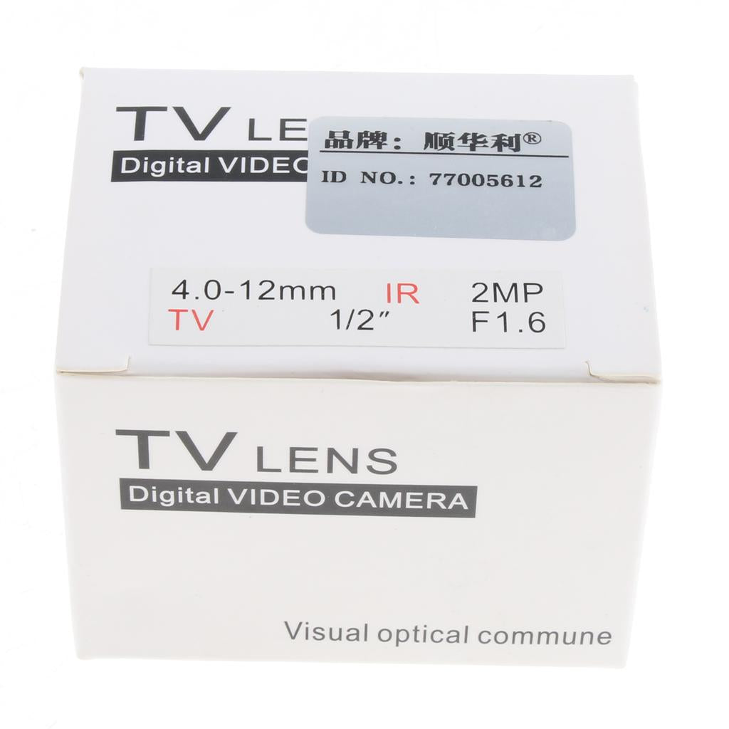 This is a 2MP FL 4-12mm F1.6 varifocal manual Iris zoom lens format 1/2".