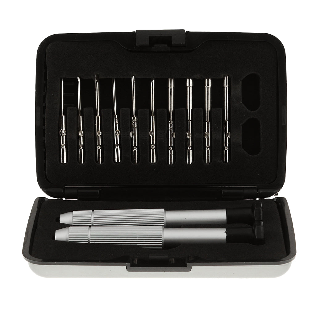• 2 pcs screwdriver handles, head screwdrivers in sizes (1.5mm,1.7mm,2.0mm,2.5mm)