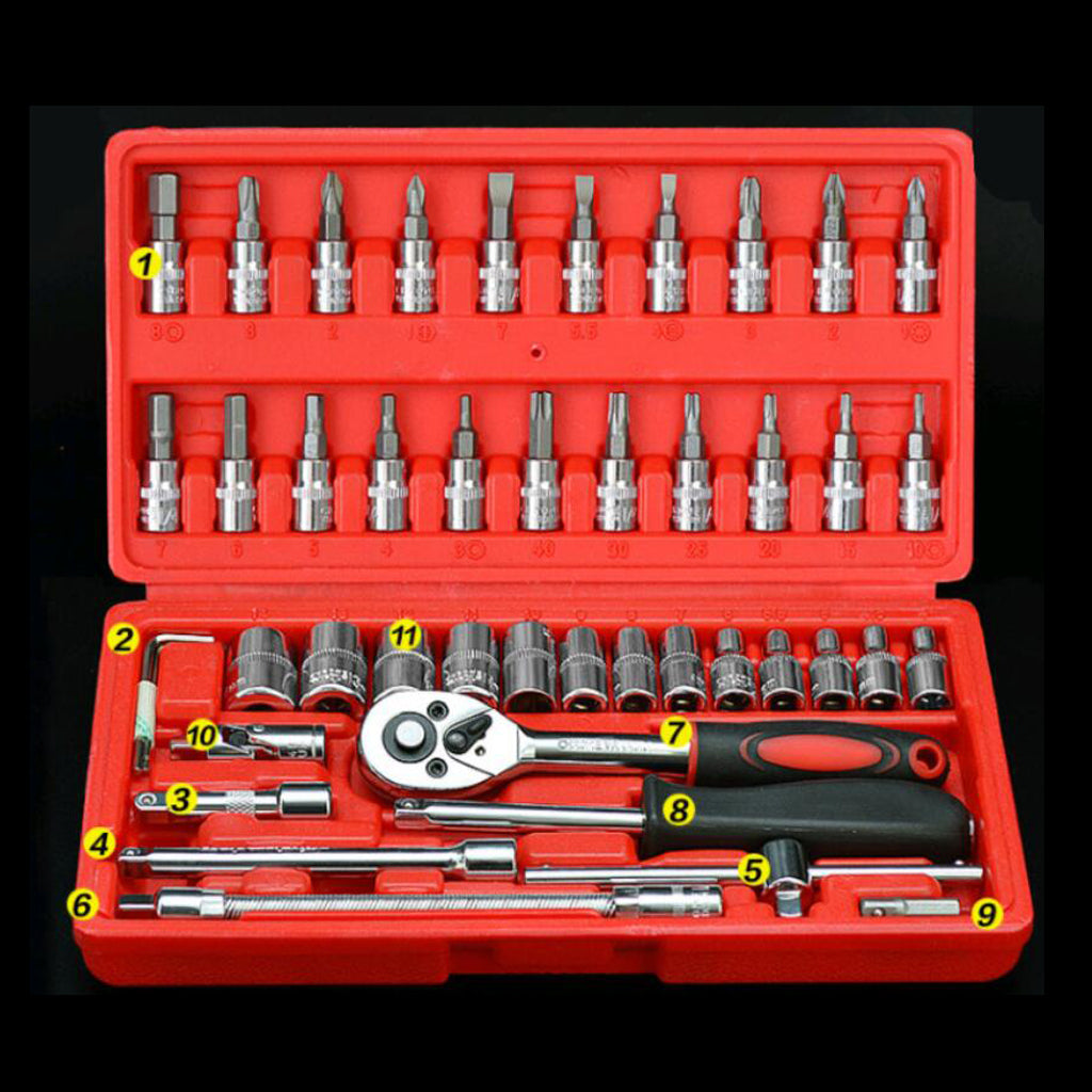 46pcs Socket Ratchet Wrench Set Car Repair Tool