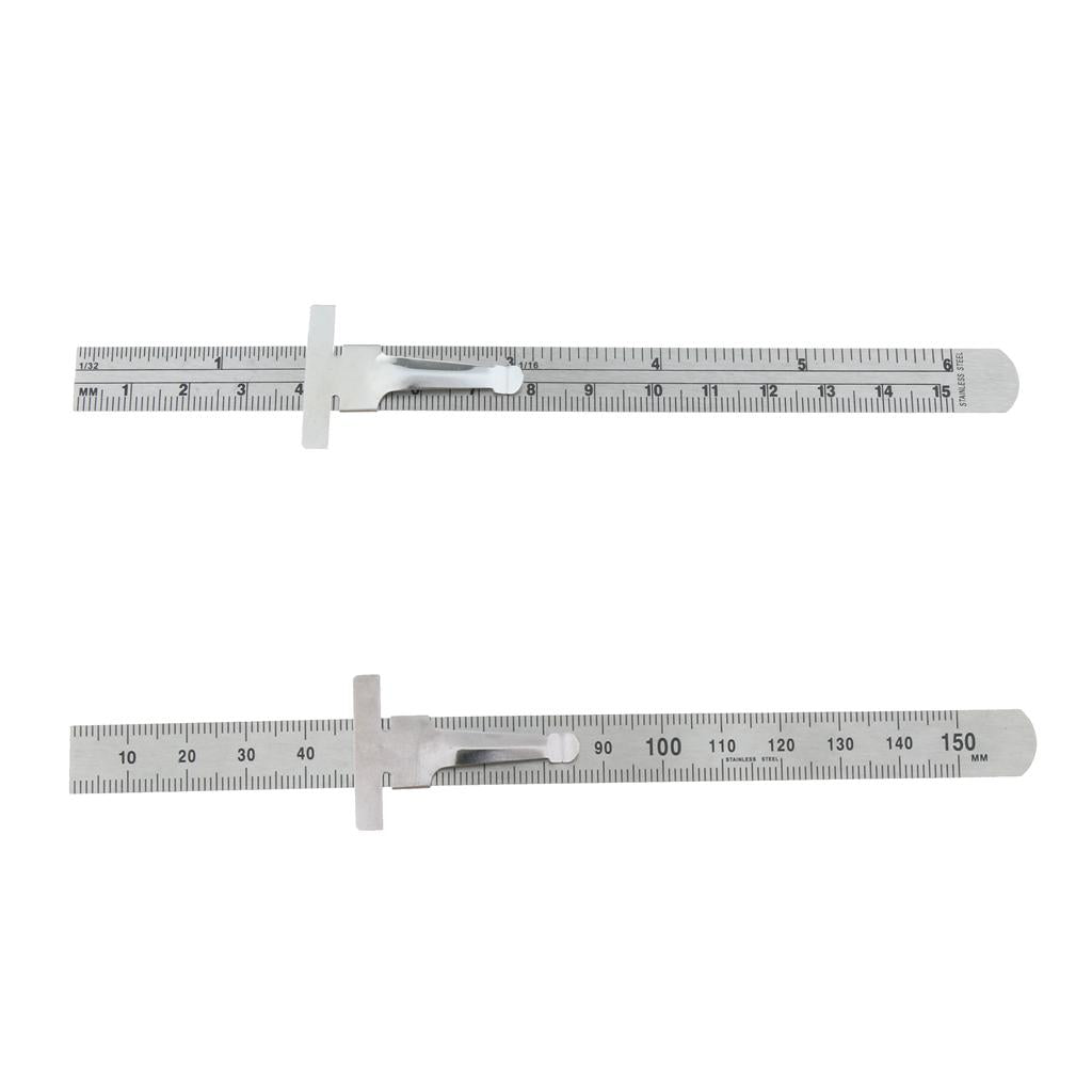 Depth Gauge Multi-function Gage Inch/Metric with Clip Inspection Ruler 6inch