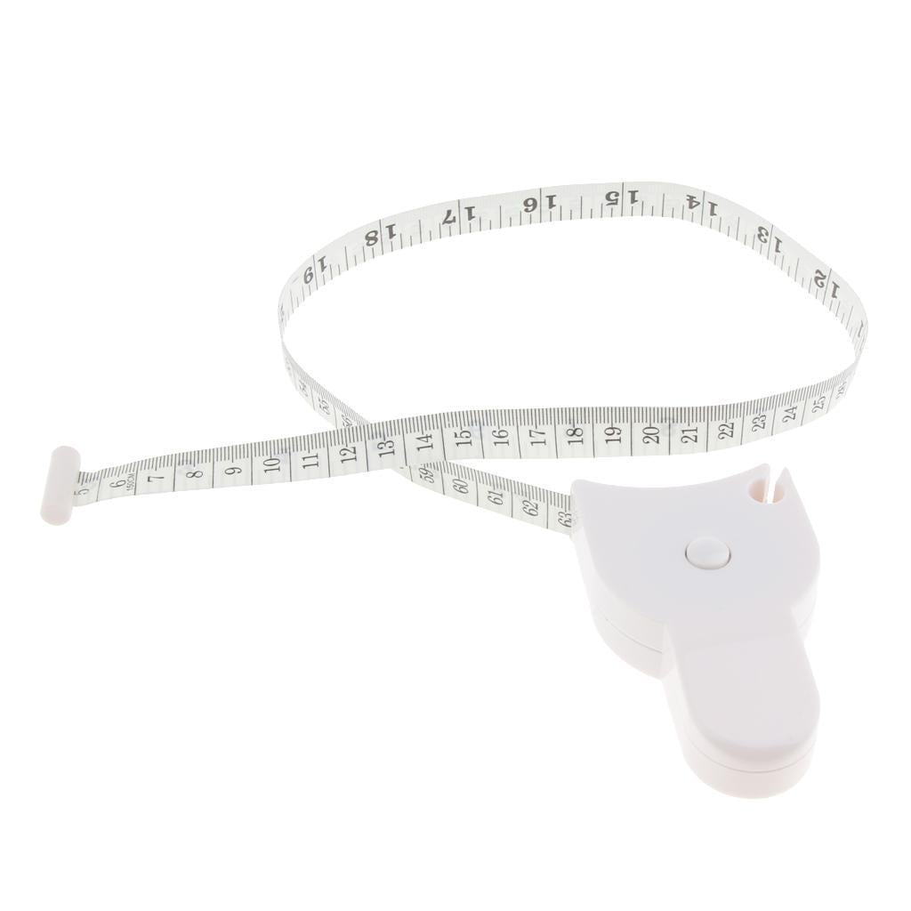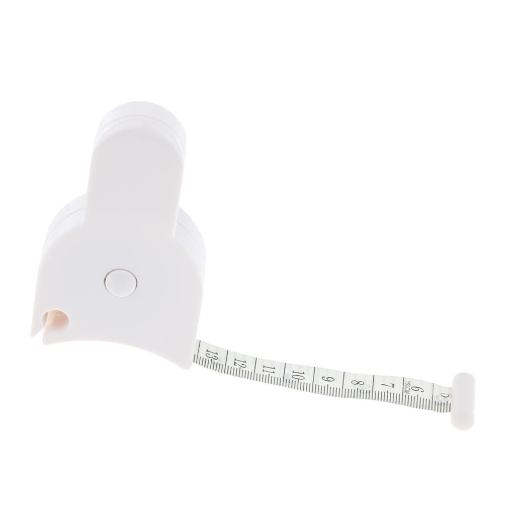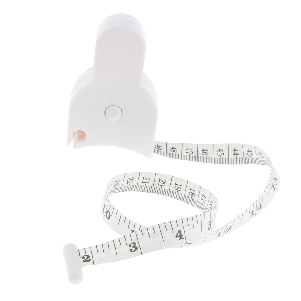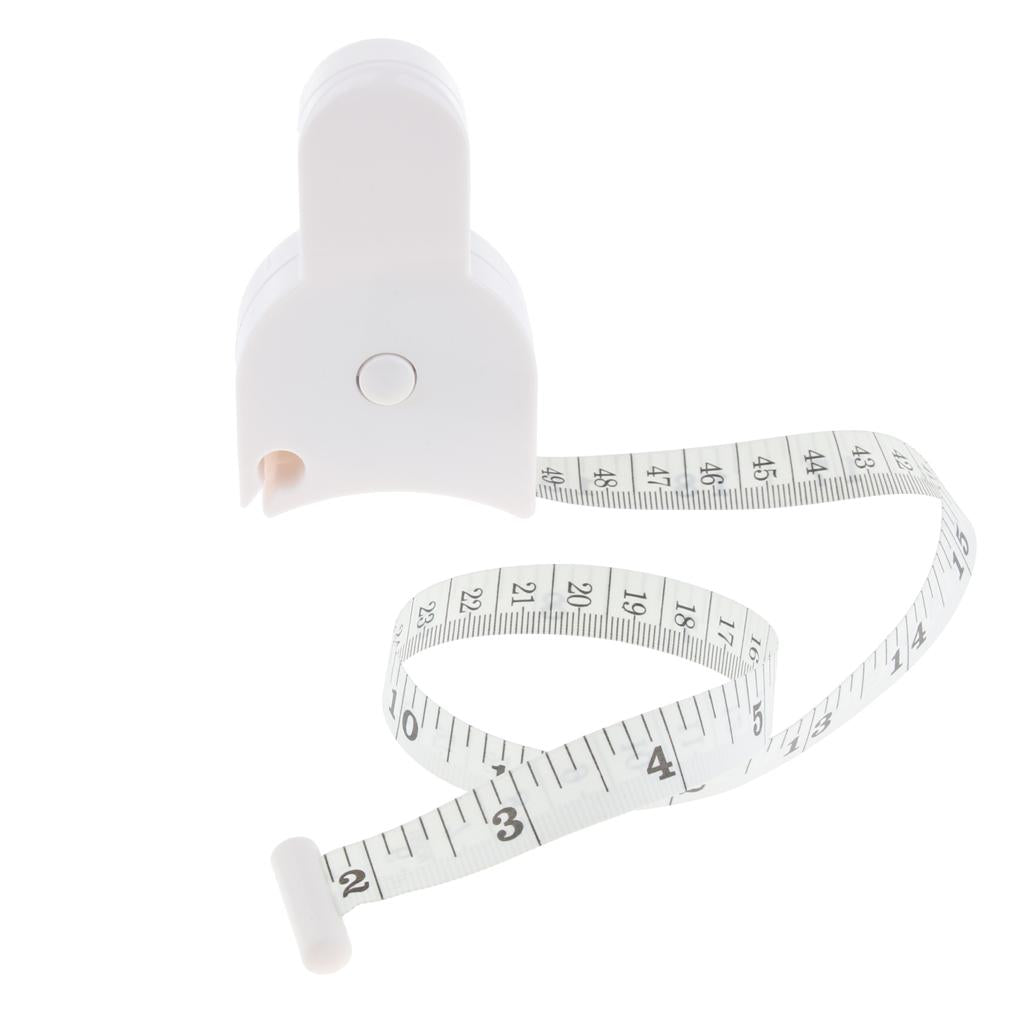 Press the button in the middle and let it retract to a snug fit; Read and record your measurement on the outer side of the tape measure.