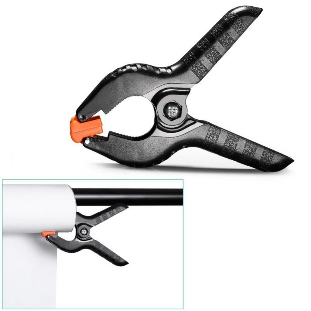 These nylon clips grip the background paper/cloth to the backdrop stand.