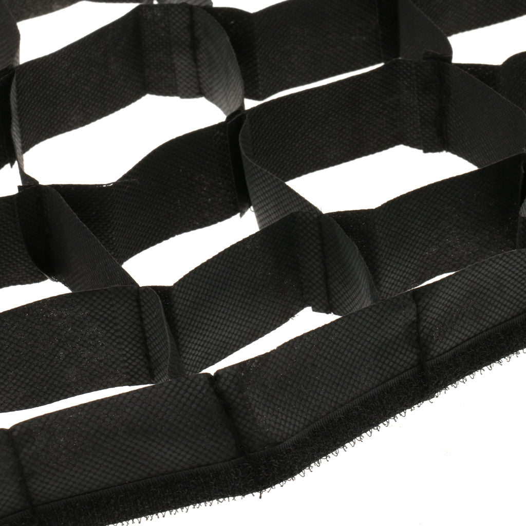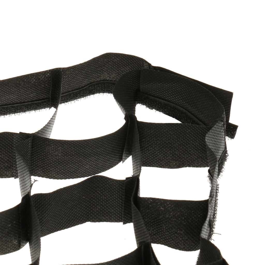 The grid is made of black special fabric, with honeycomb-style design and paste sewn around the sides, can be respectively fastened to the inner side of the 8.7"x35" / 22x90cm softbox.