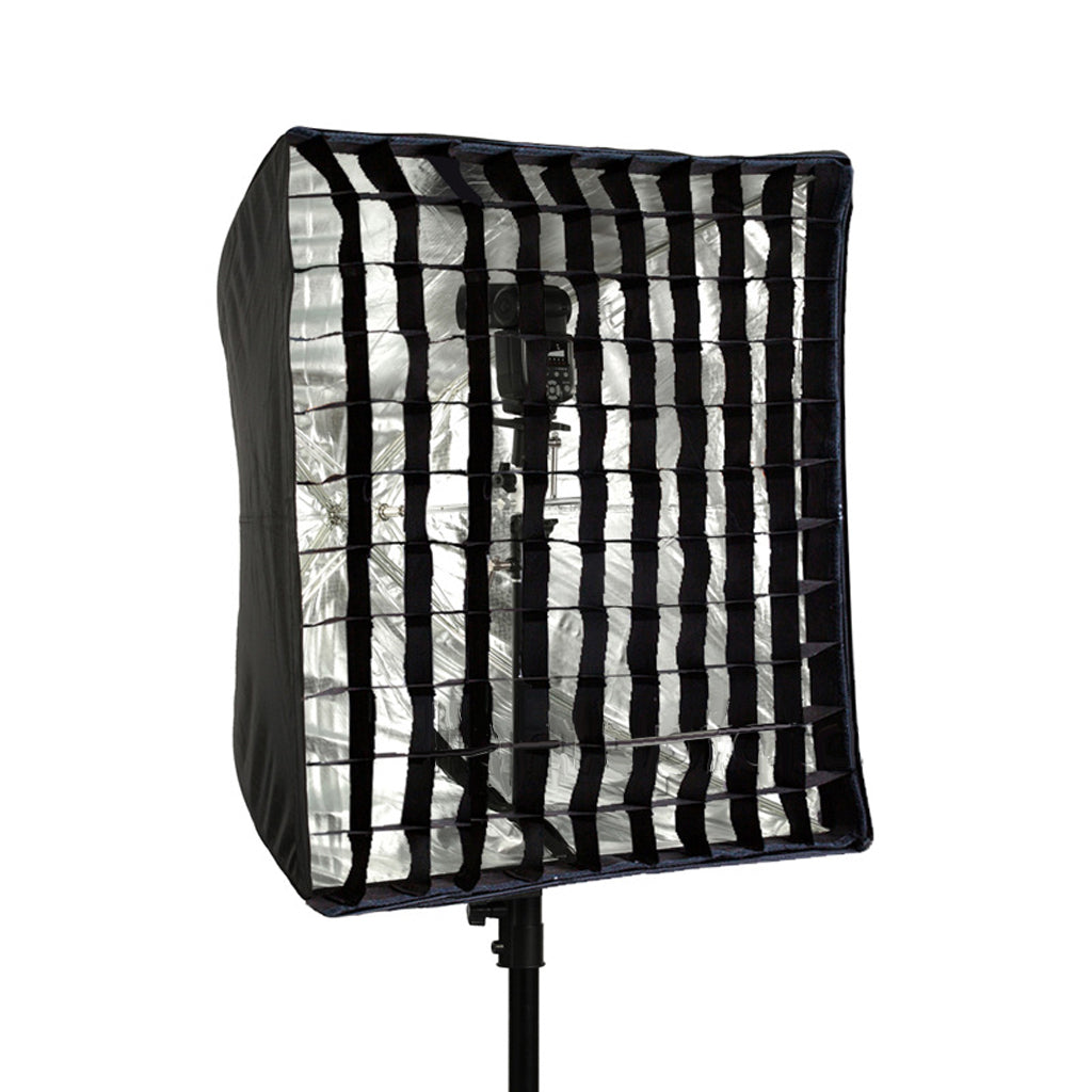 The soft, even light quality of the boxes remains, but the grids allow you to have more directional control over the output.