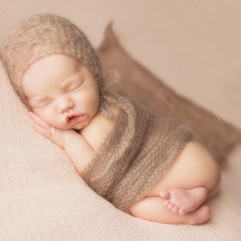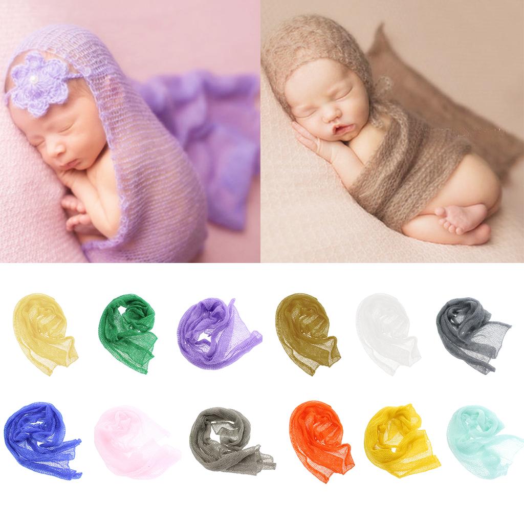 Baby Strech Mohair Crochet Knit Wrap Photo Props Blanket Backdrop Dark Grey