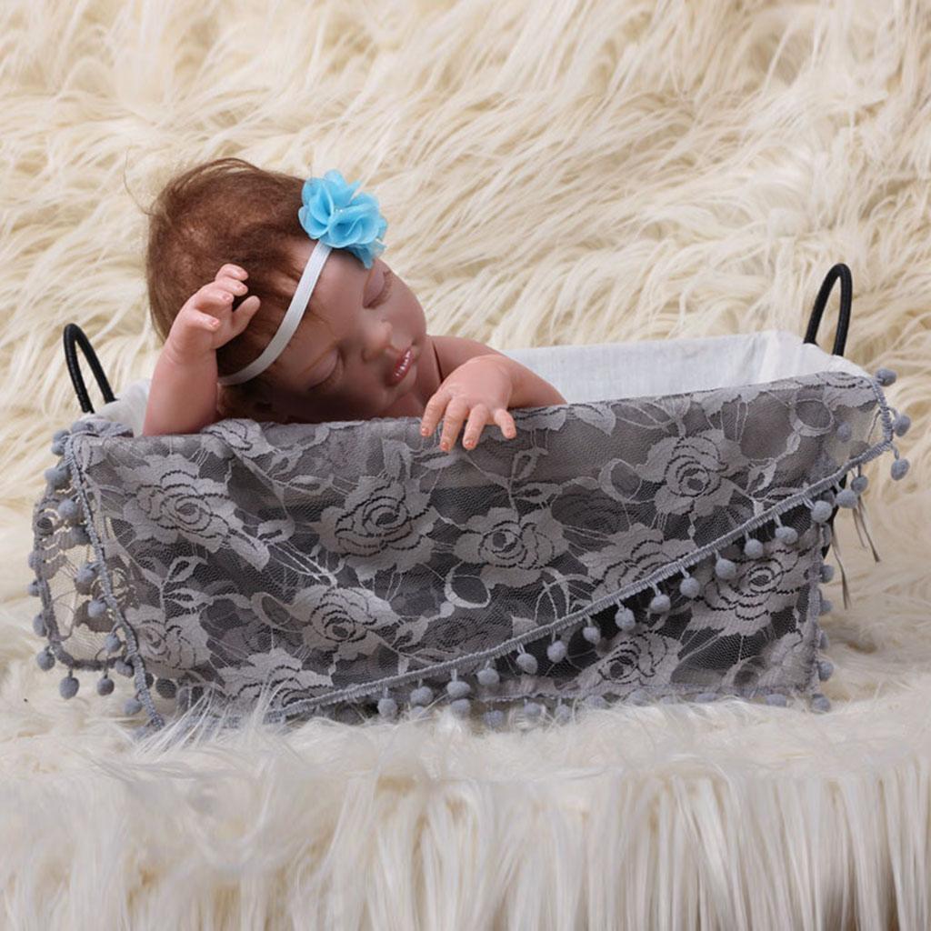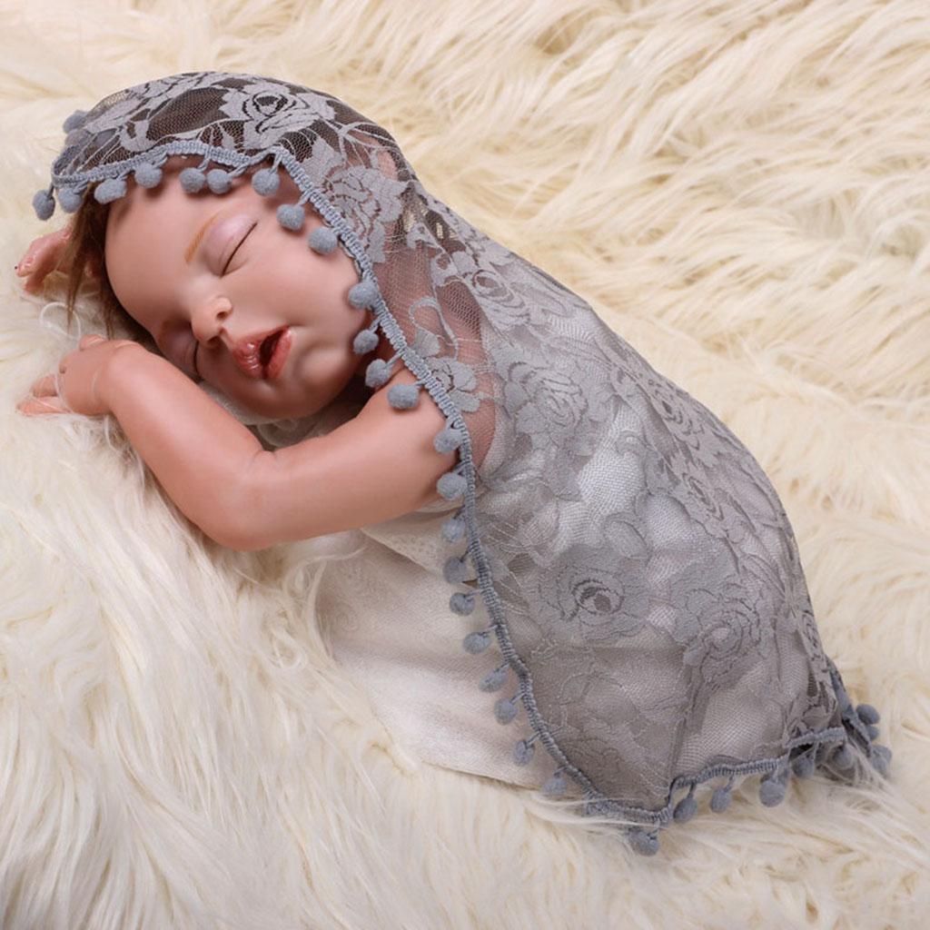Newborn Baby Photography Photo Props Ball Tassels Lace Wrap Gray