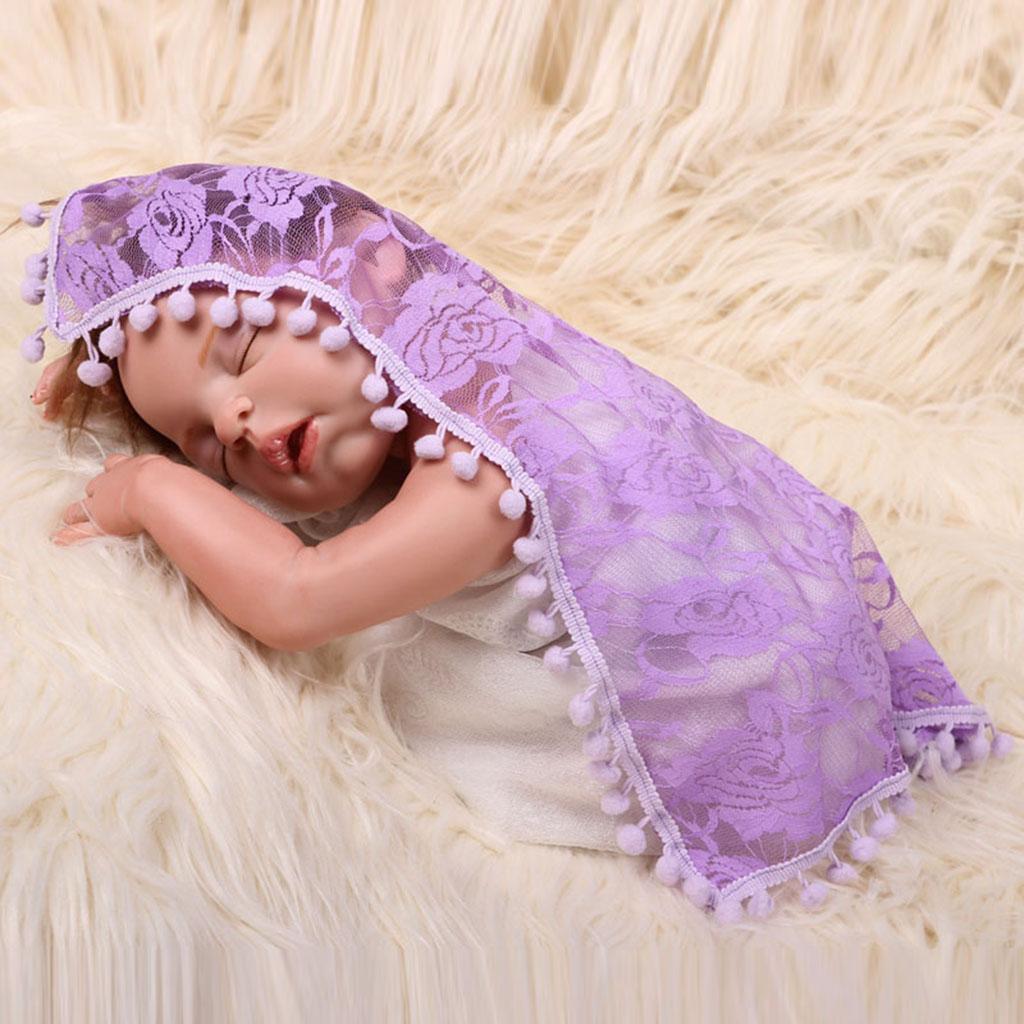 Newborn Baby Photography Photo Props Ball Tassels Lace Wrap Purple