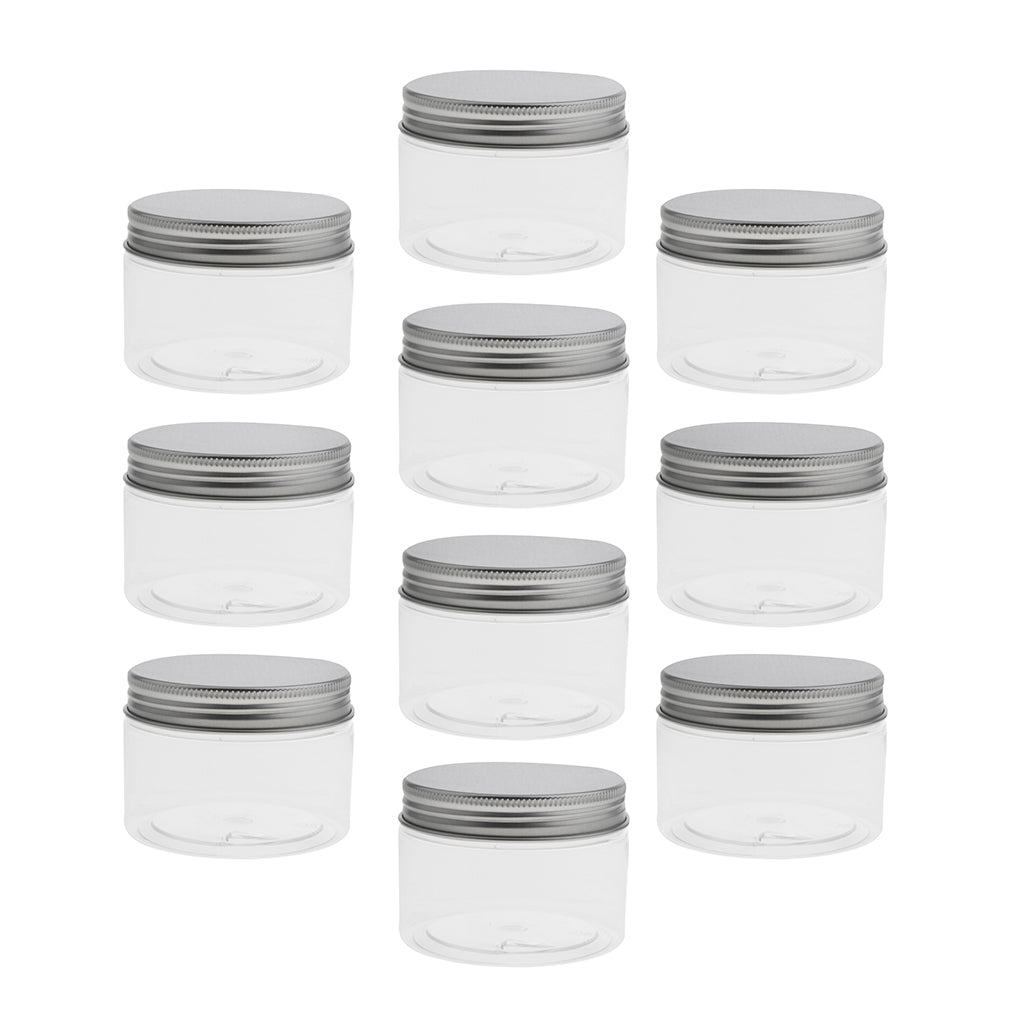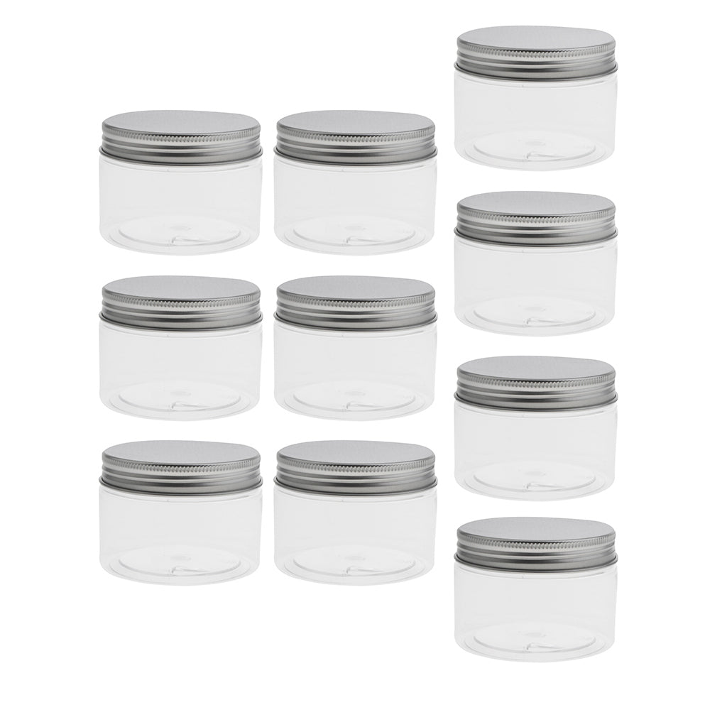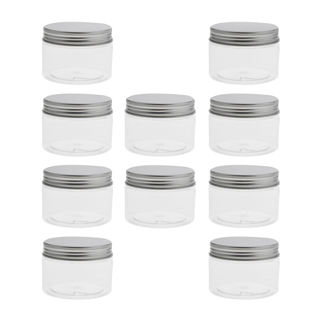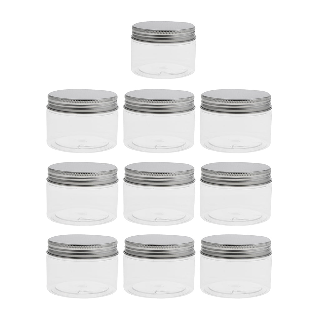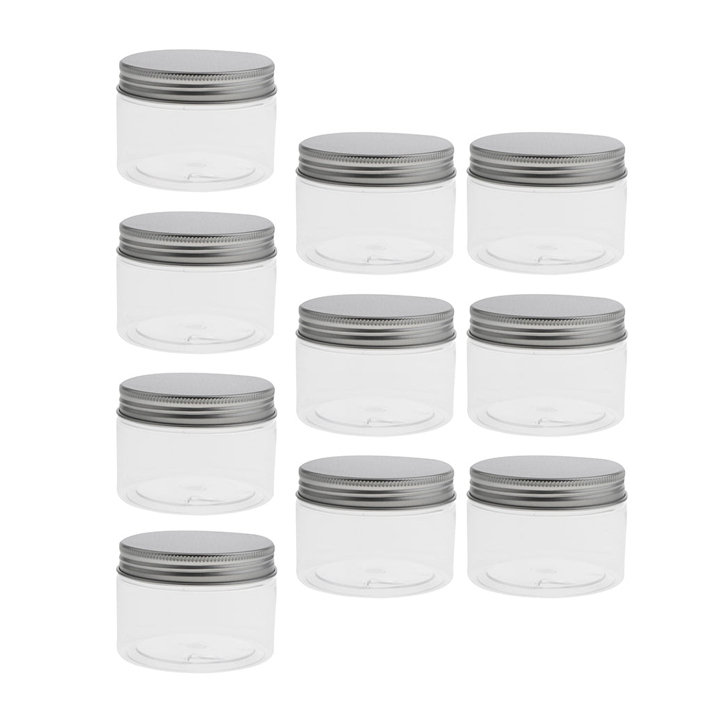 10pcs Plastic Jars Set, 30ml-120ml clear plastic jars with screw-on lid for you choose. Different size satisfy your various request