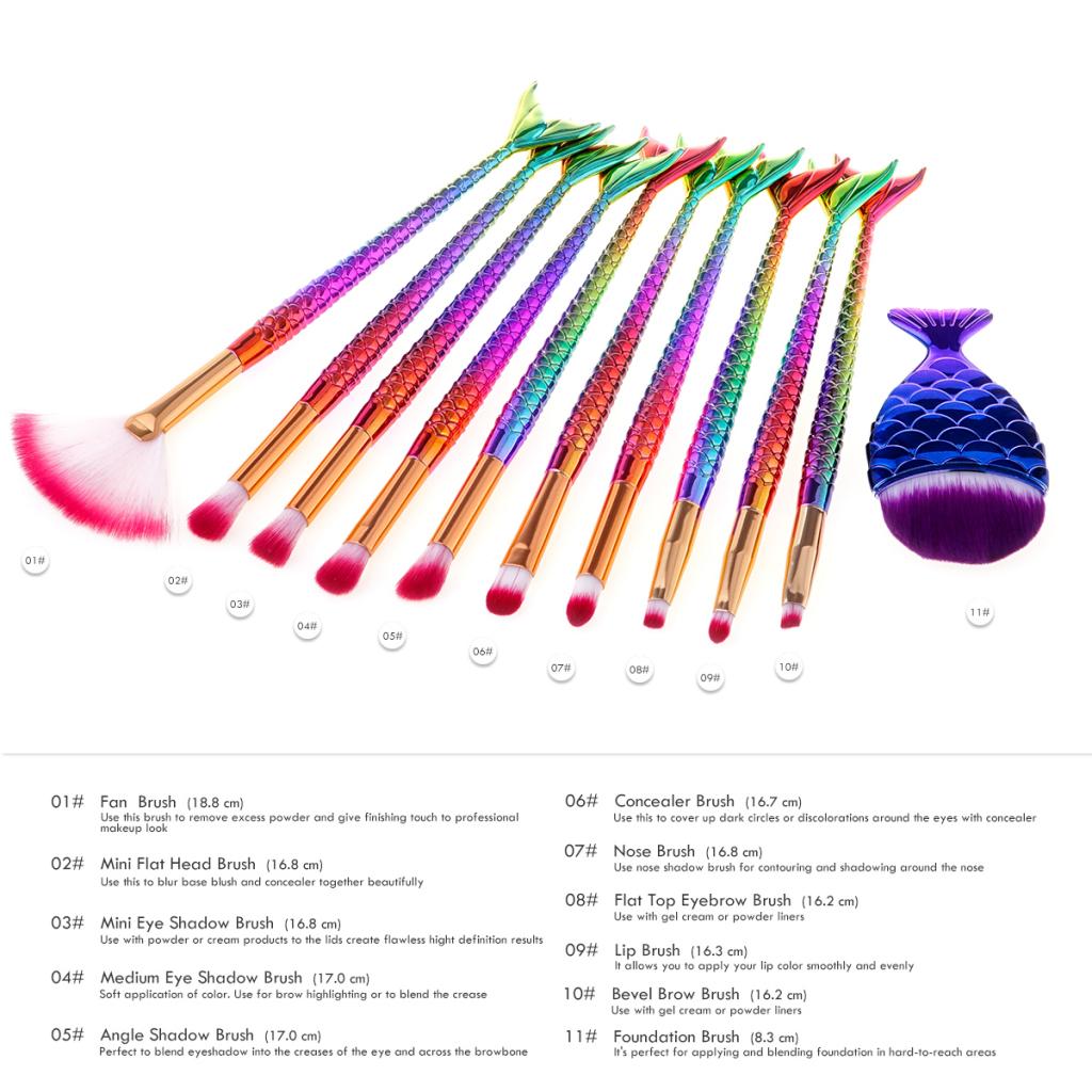 Fish tail style brushes set, shining and eyecatching for your daily cheerful use.