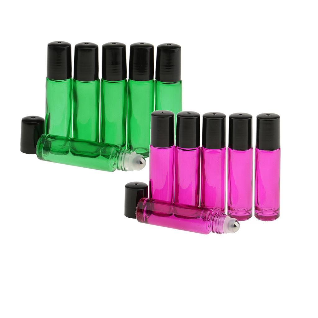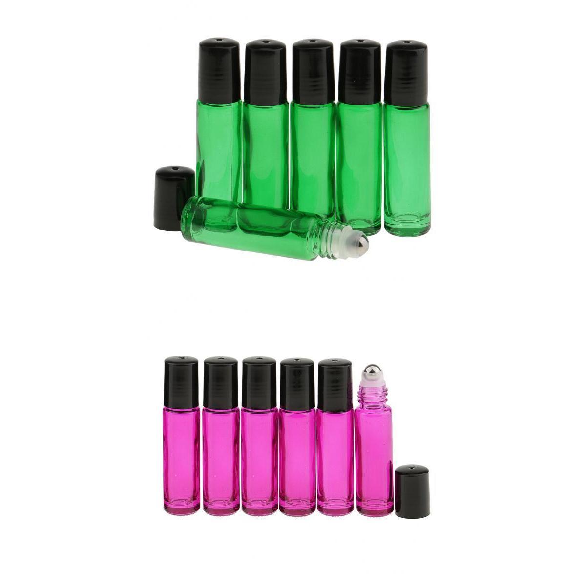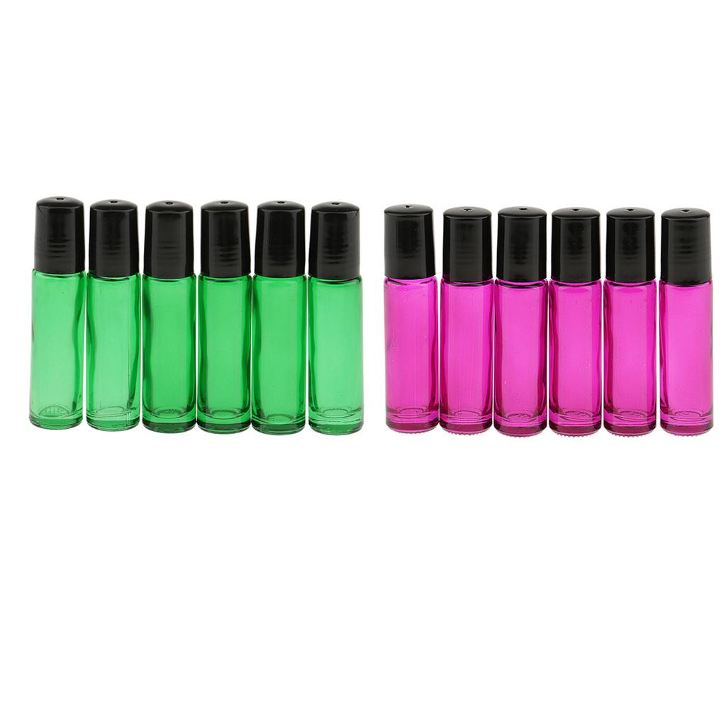 12 Pieces 10ml Empty Glass Roll On Bottles For Essential Perfume Red Green