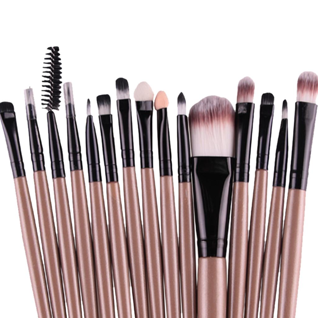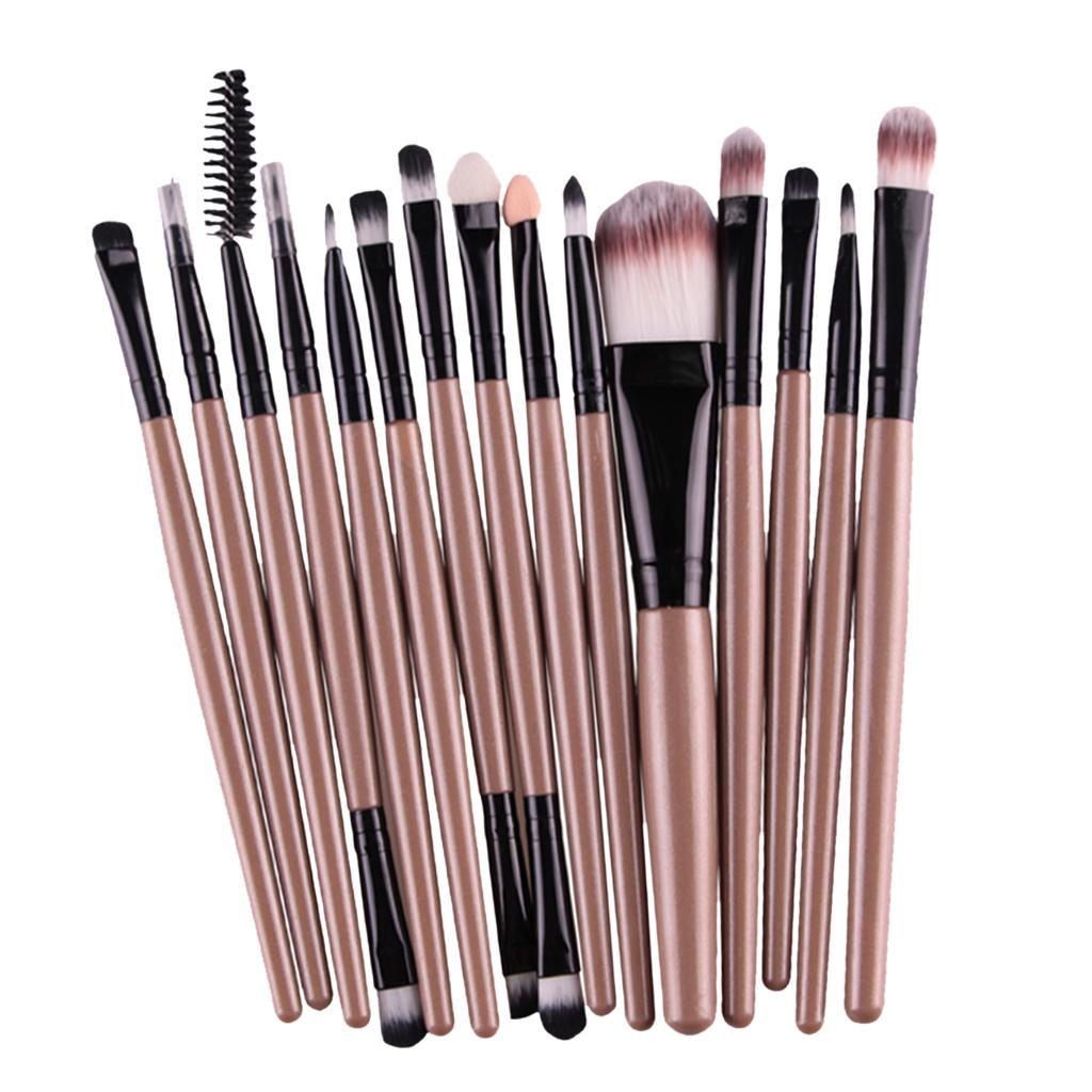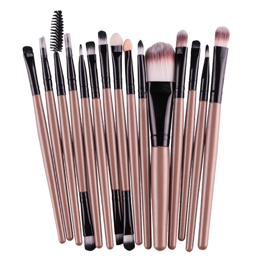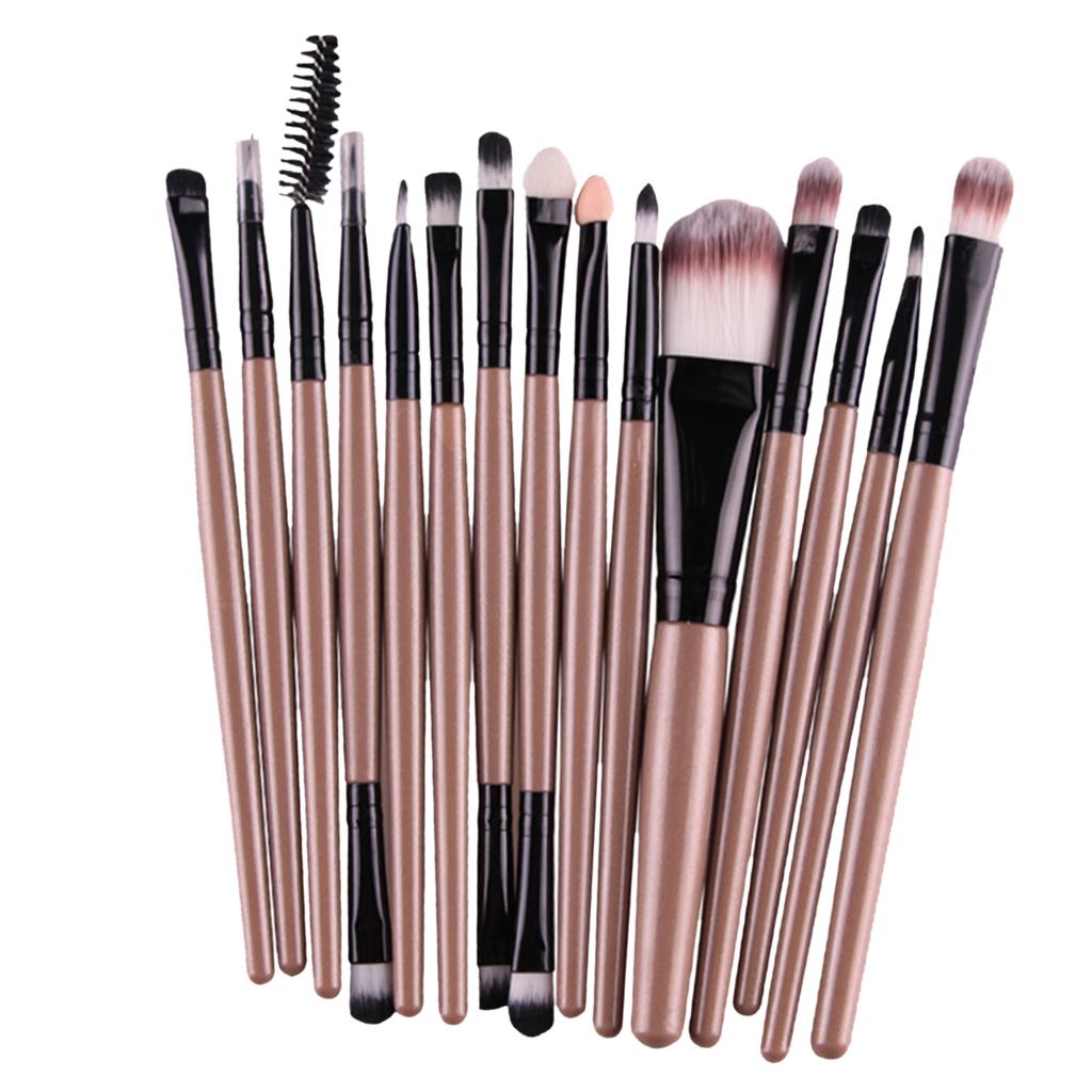 15 Pieces Cosmetic Eyeshadow Eyeliner Eyebrow Makeup Brush Rose Gold Black