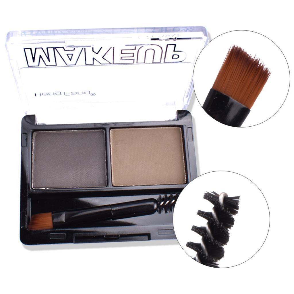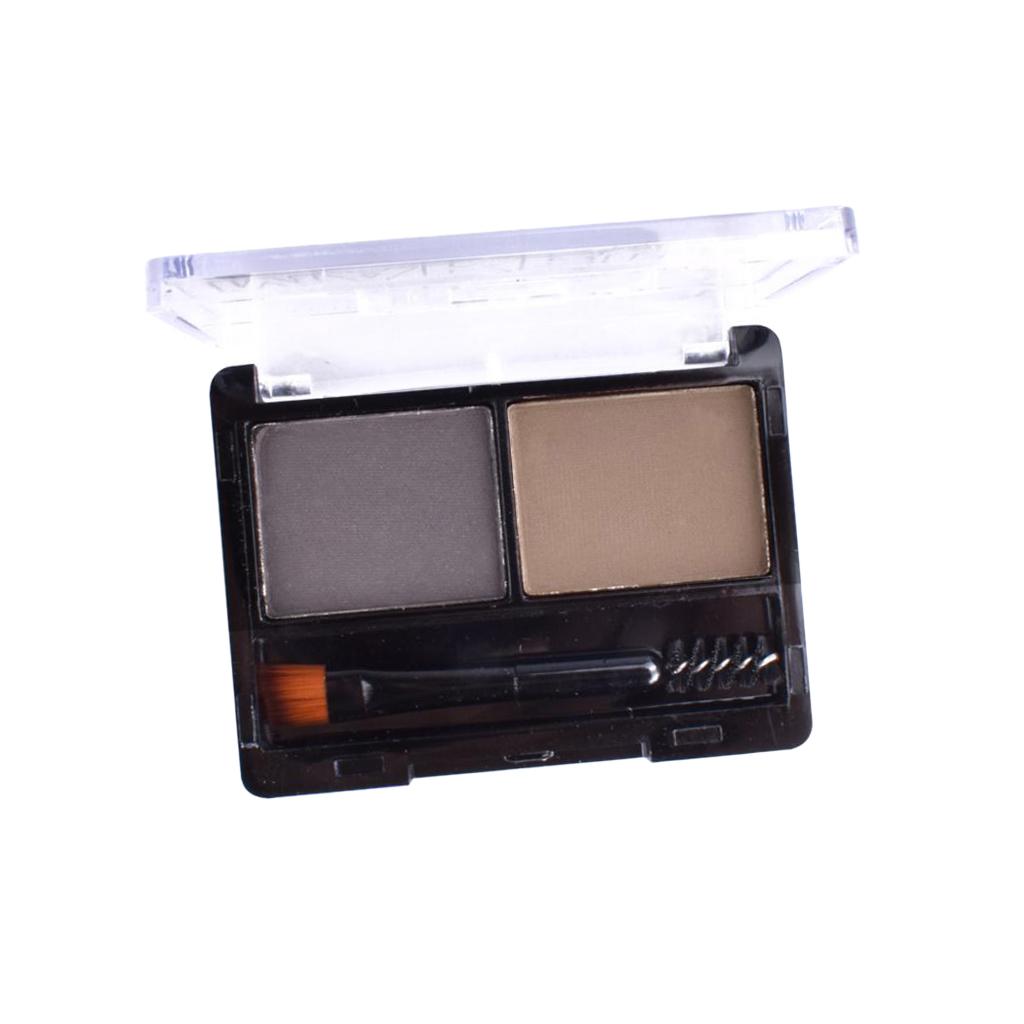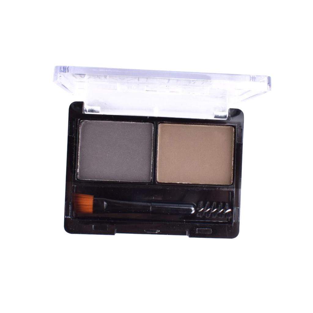 2 Colors Eyebrow Powder Palette Cosmetic Makeup Nose Shading Kit Brush Set #B