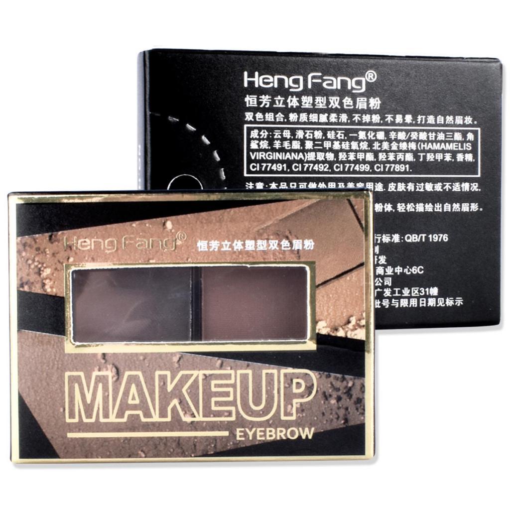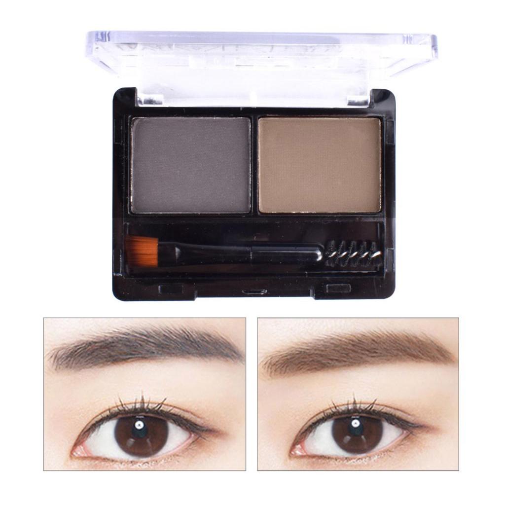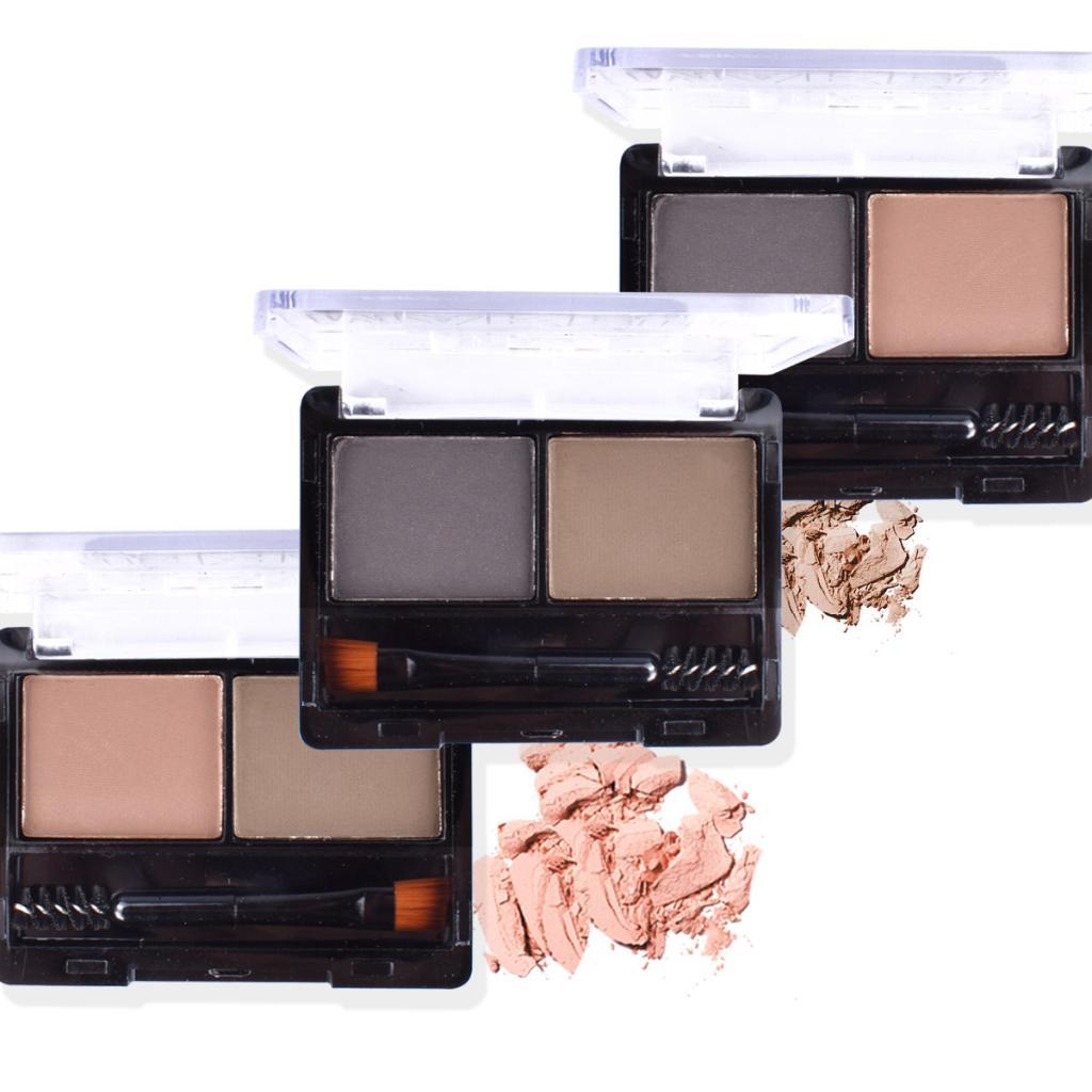 2 Colors Eyebrow Powder Palette Cosmetic Makeup Nose Shading Kit Brush Set #B