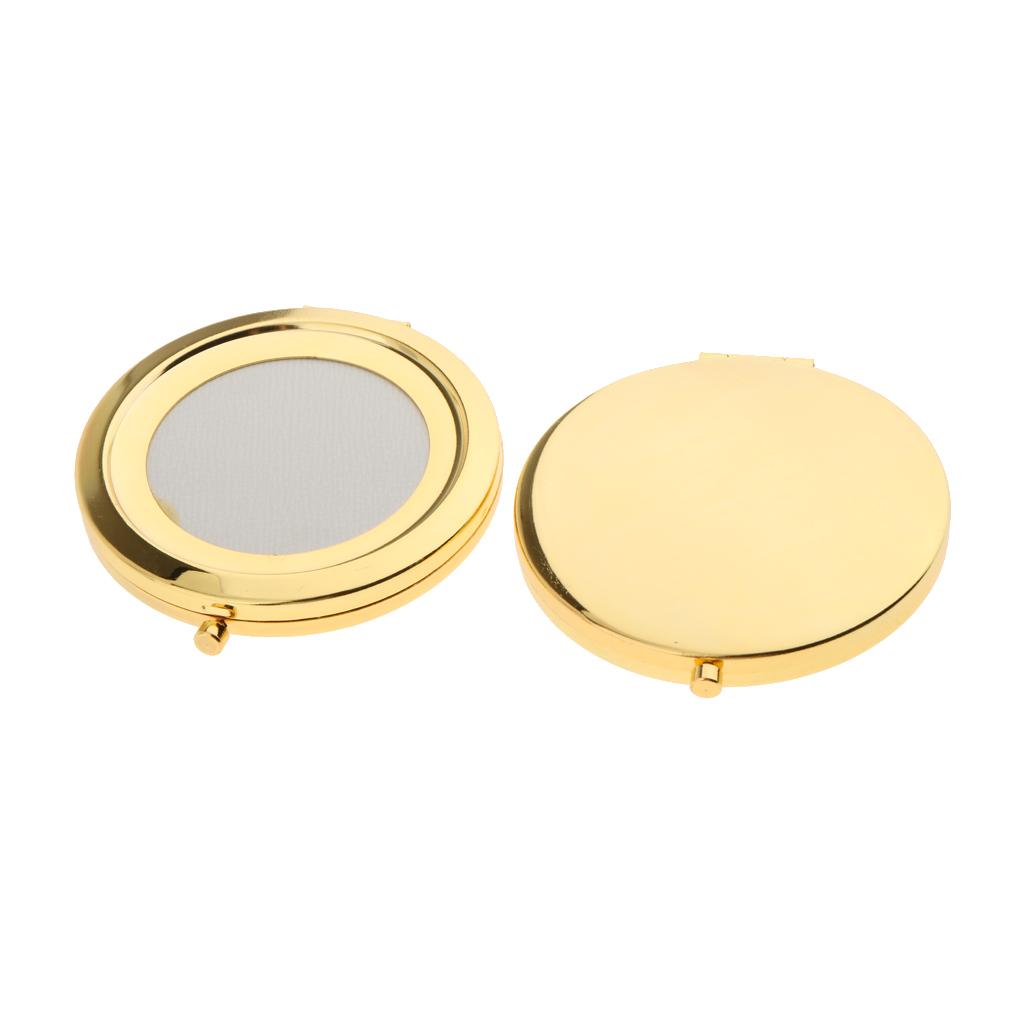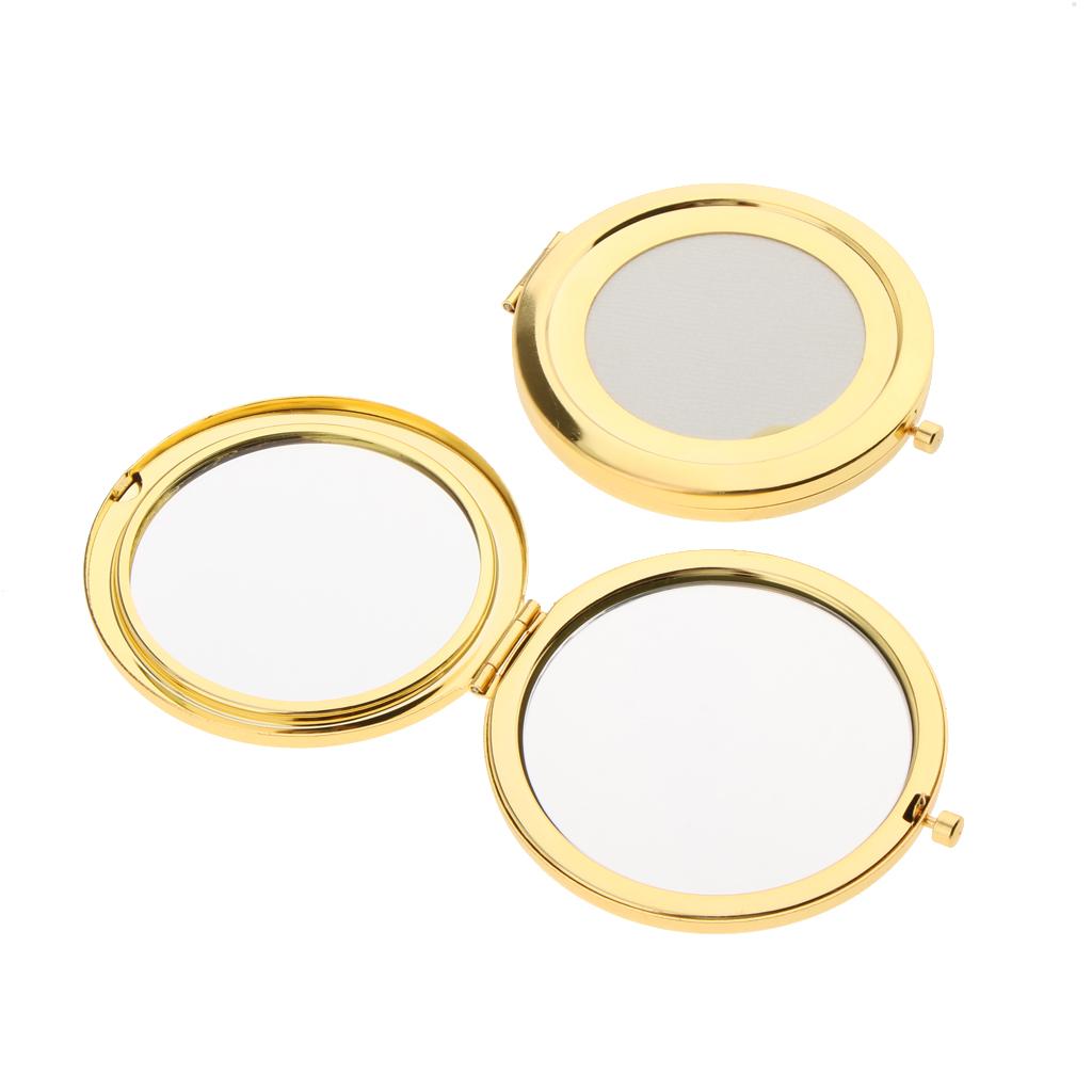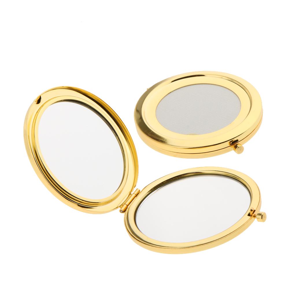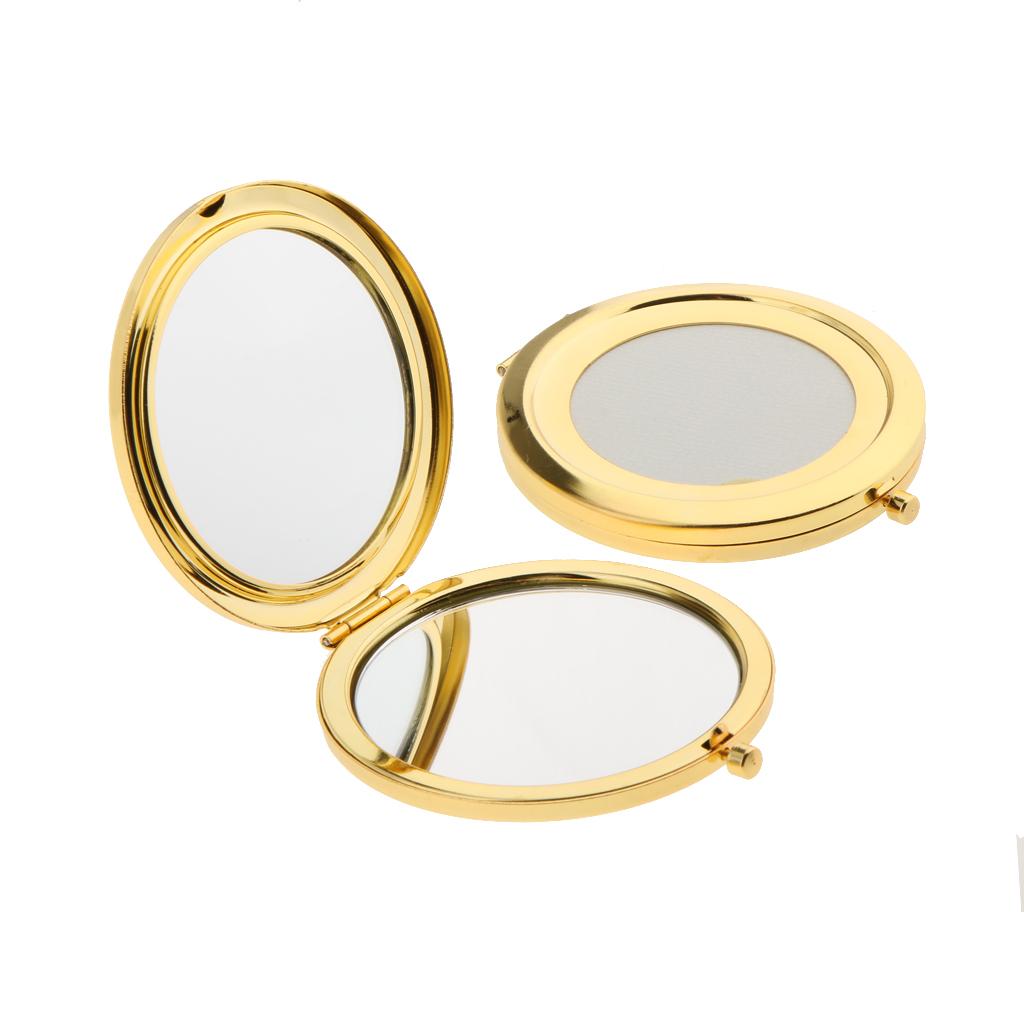 2 Travel Portable Folding Makeup Mirror Round Compact Pocket Purse Gold