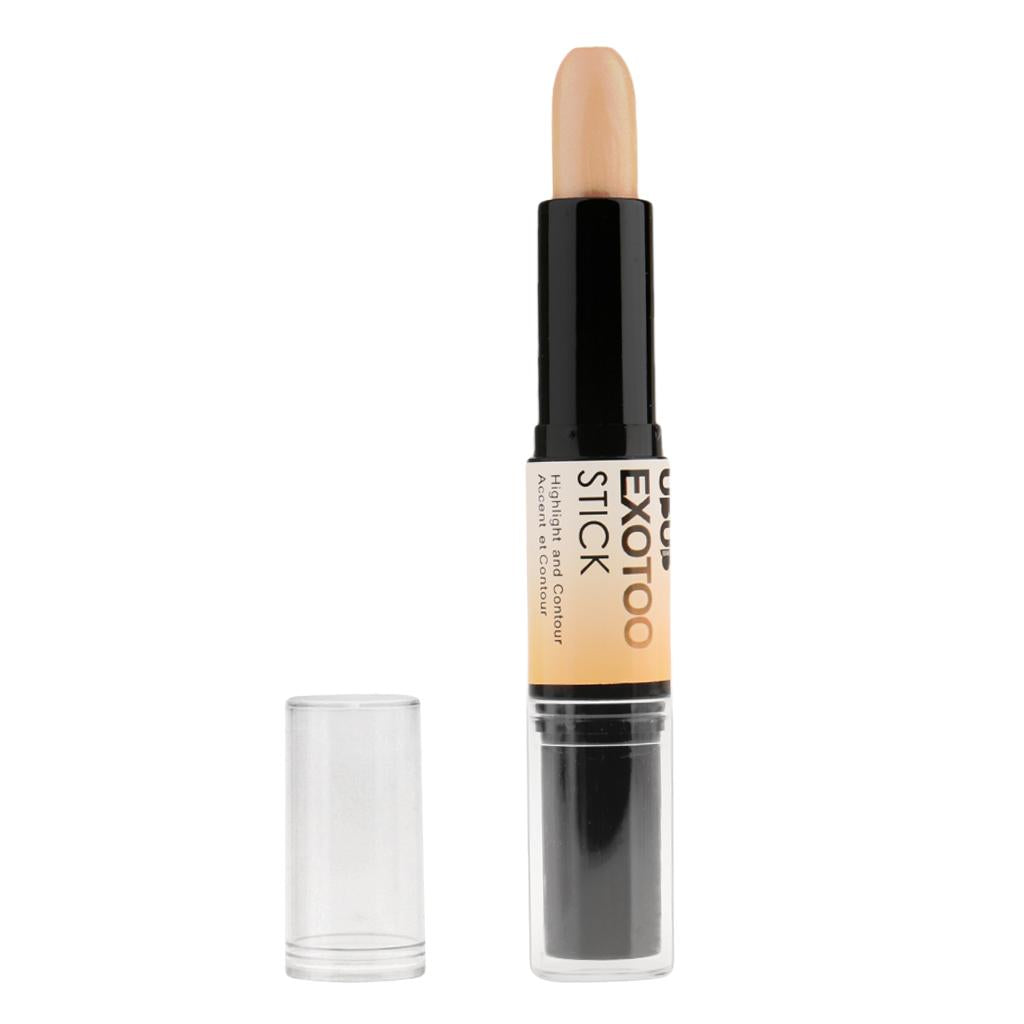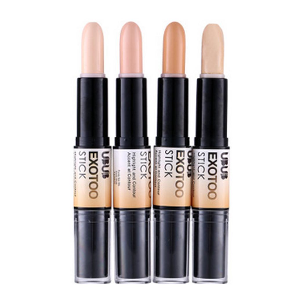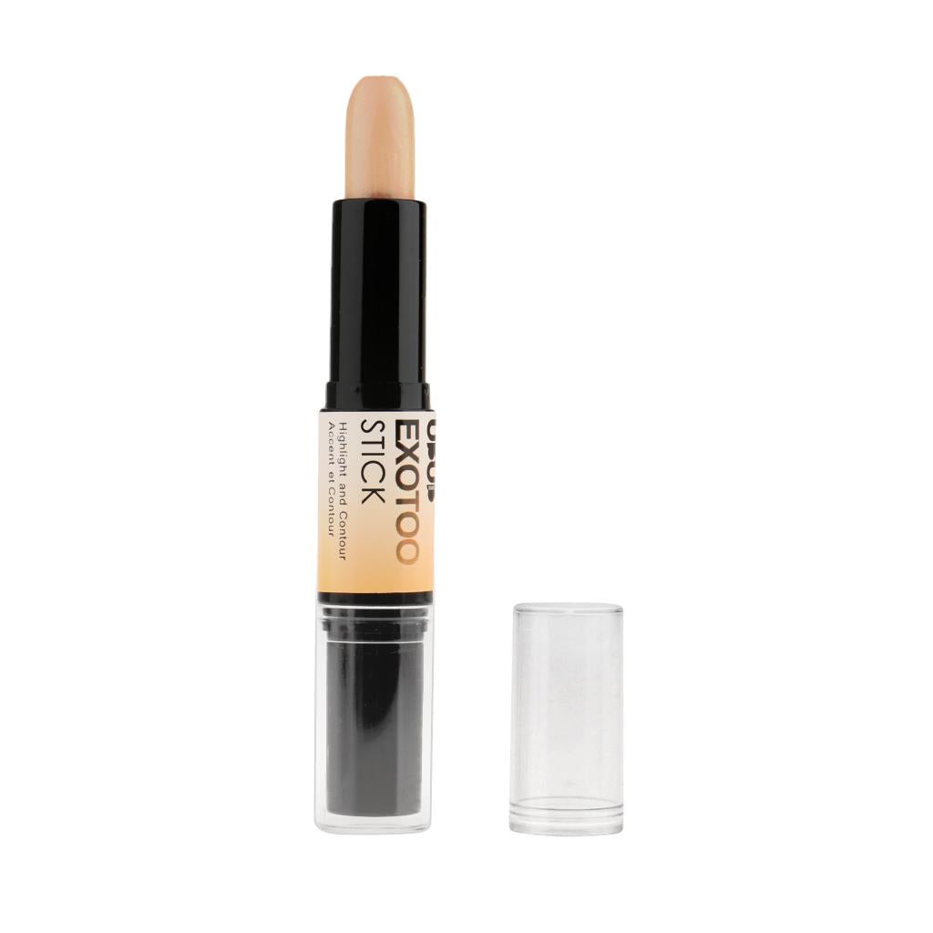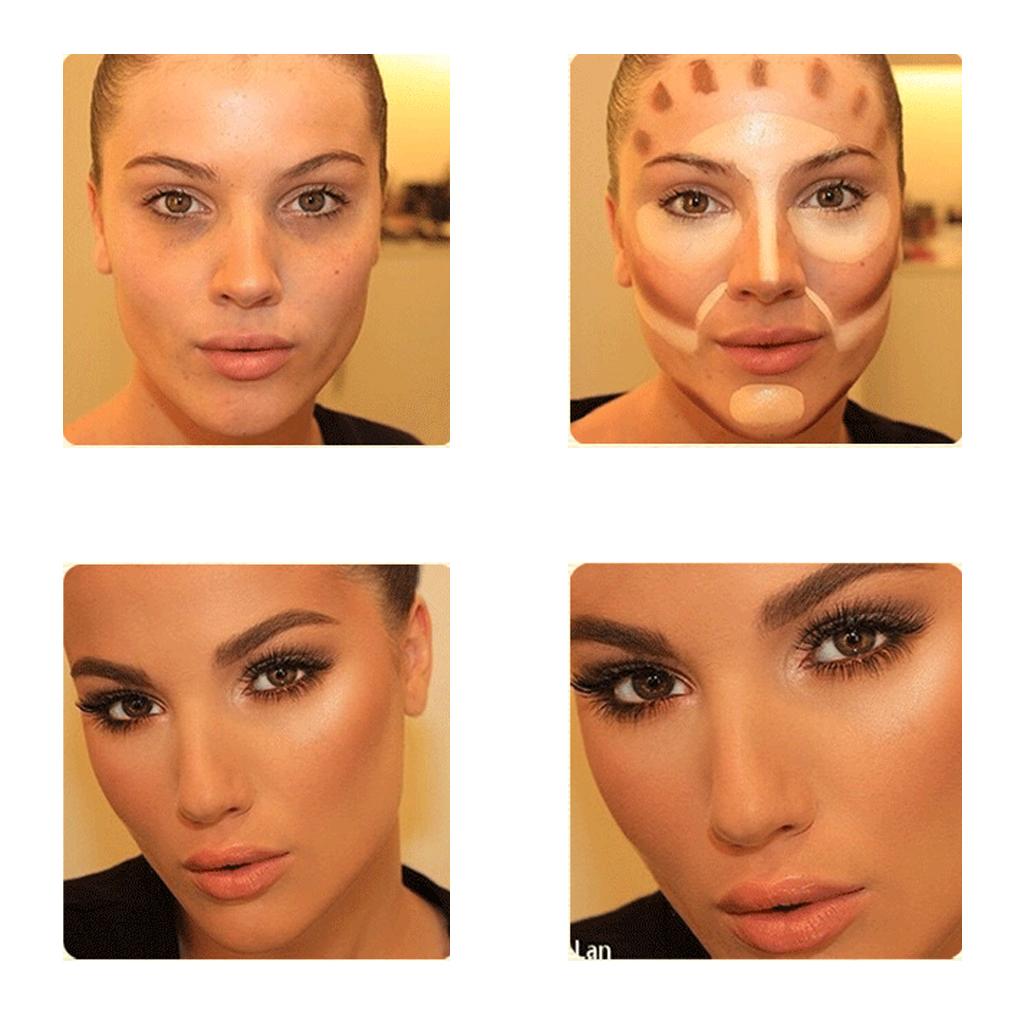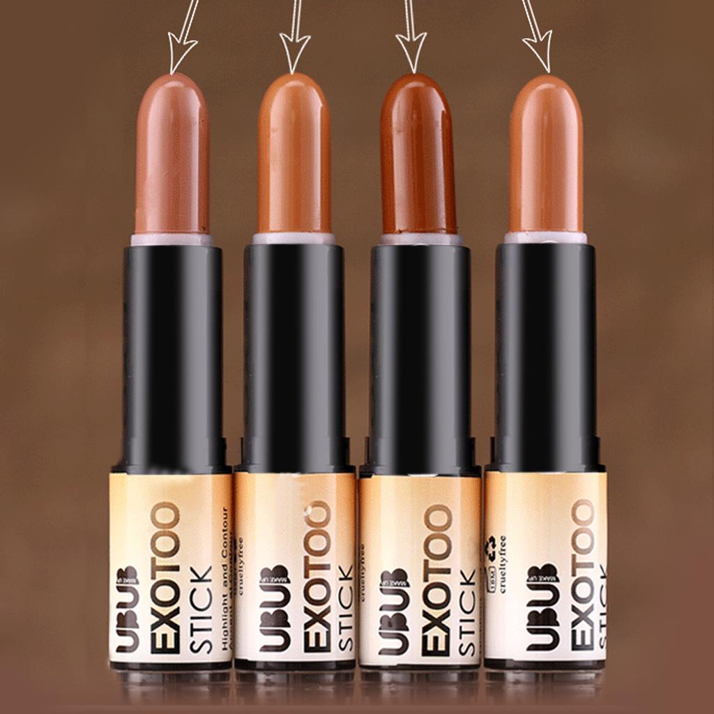 1. Apply highlight stick on cheekbones, middle of forehead, under eyes, down the center of your nose, on the brow bone and along the jawline.