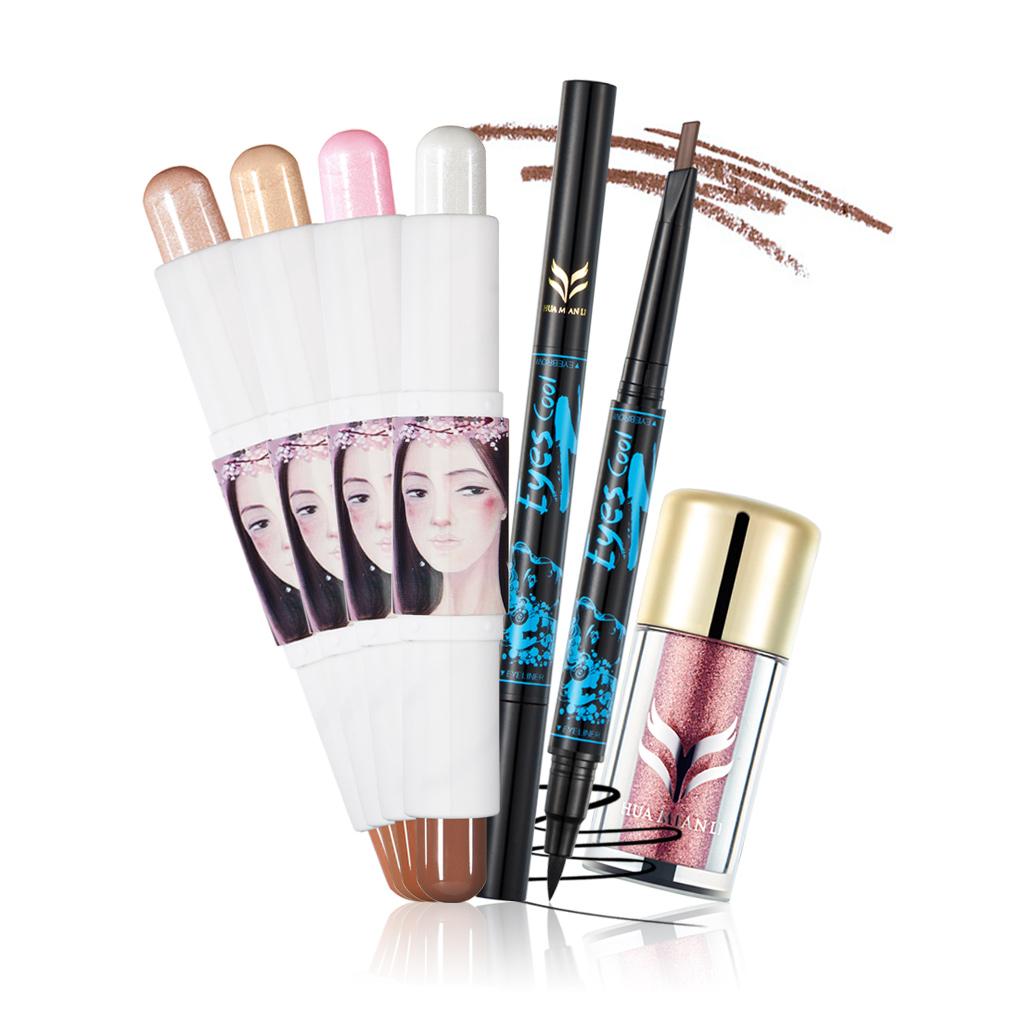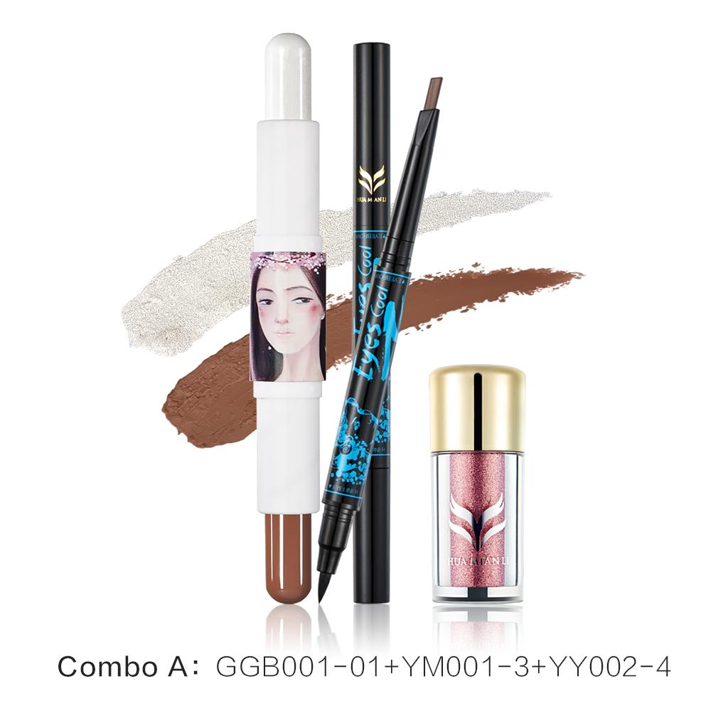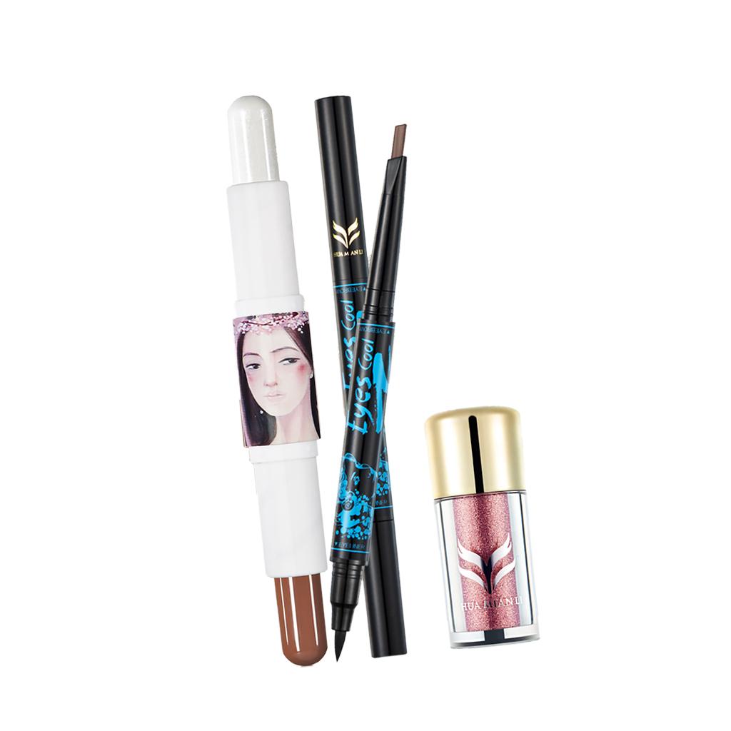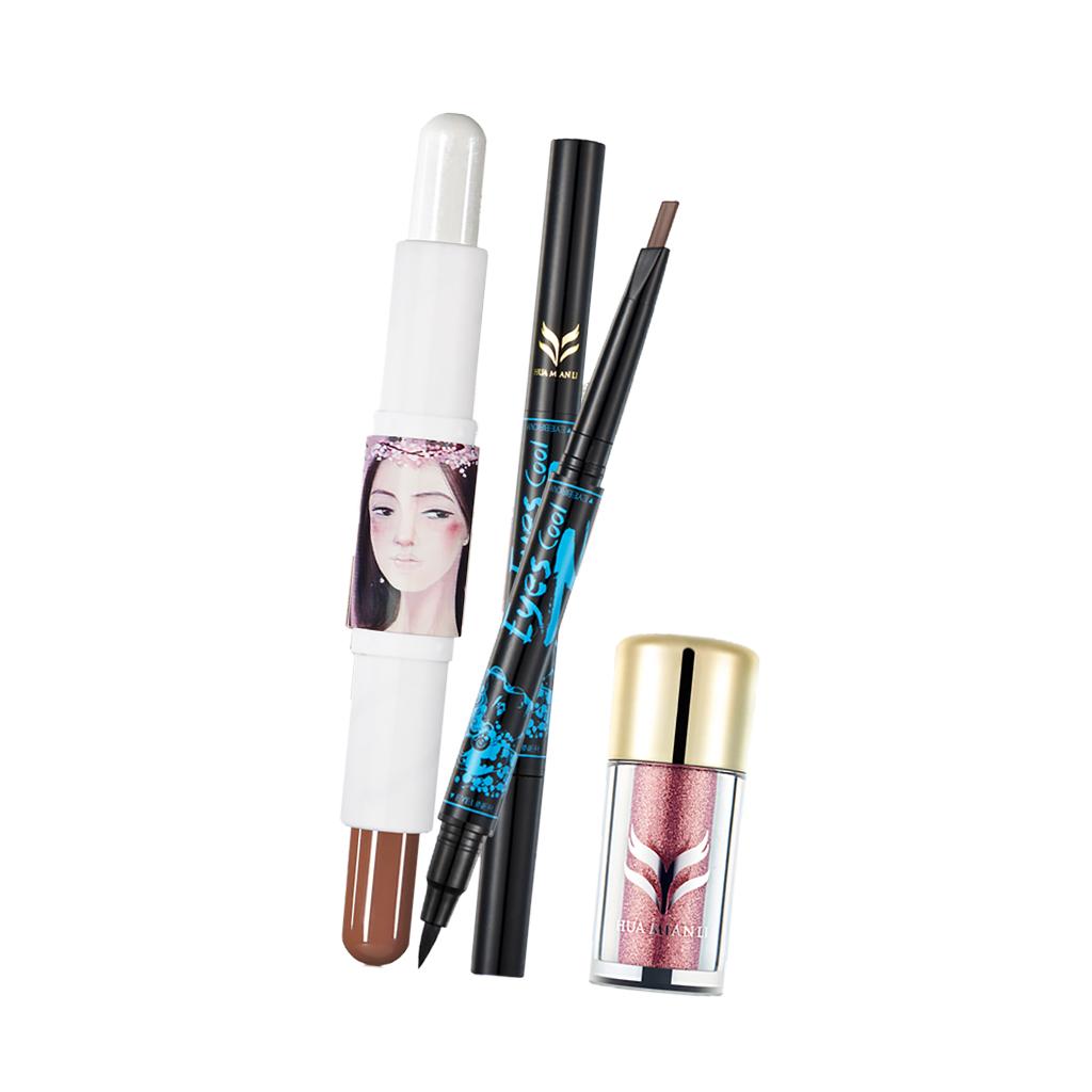 Consist of concealer highlighter stick,double head eyebrow eyeliner pen and eyeshadow powder.