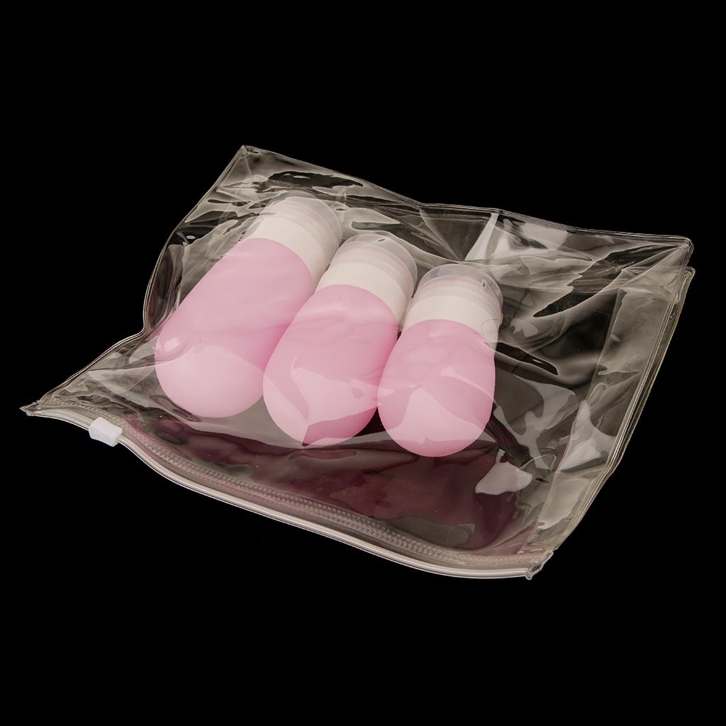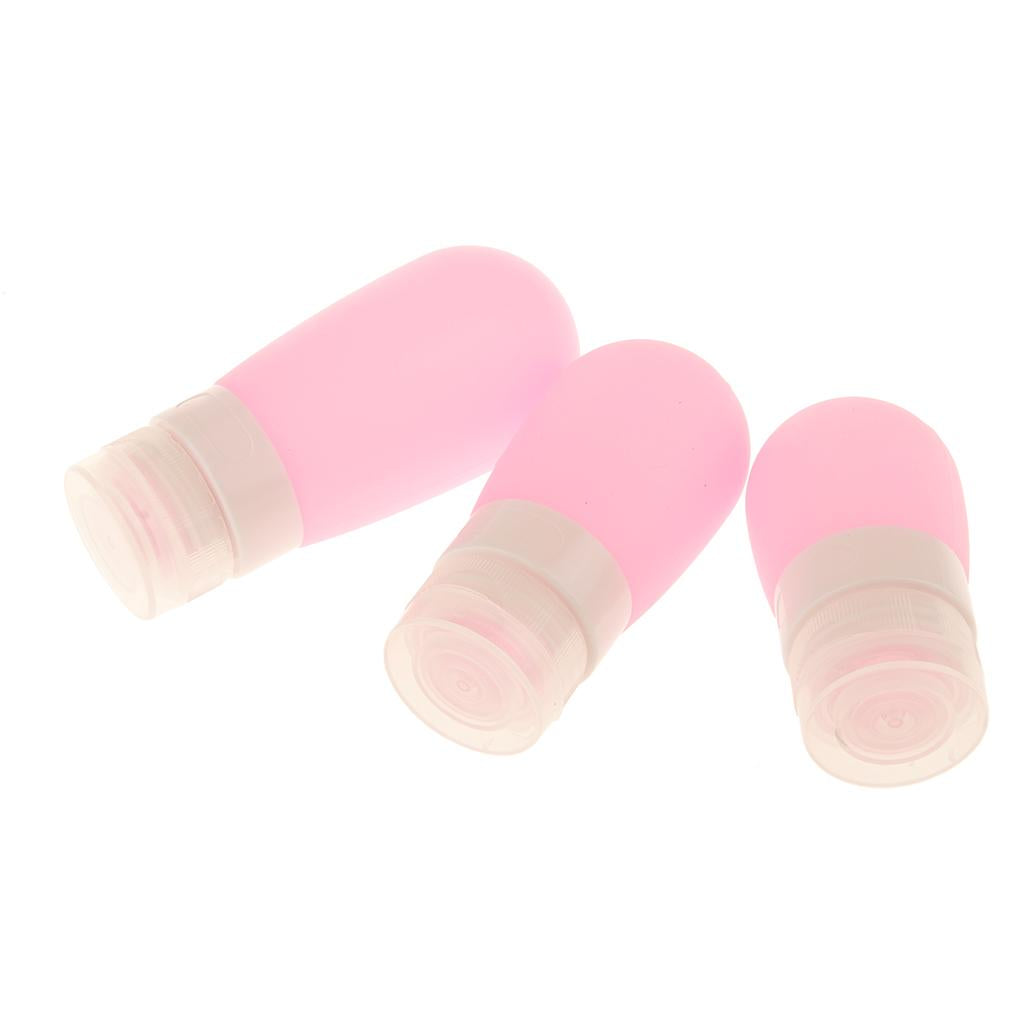 3Pcs Pink Silicone Travel Press Bottle for Lotion Shampoo Bath Container