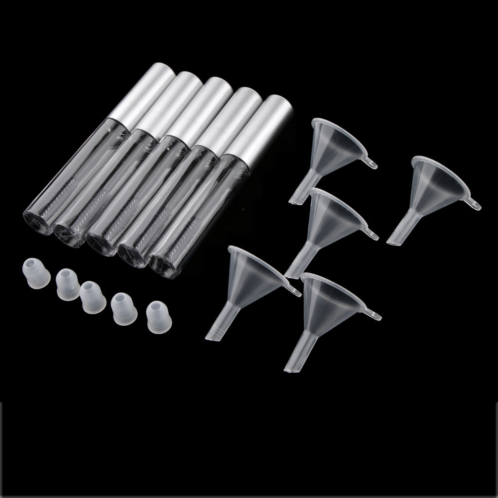 5 Pieces 10ML Clear Empty Mascara Tube Eyelash Liquid Bottle Makeup Cream Tubes Vials Containers with Wands Brushes and Rubber Inserts, Funnels