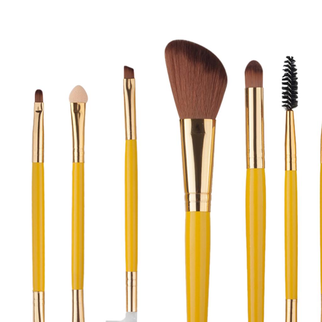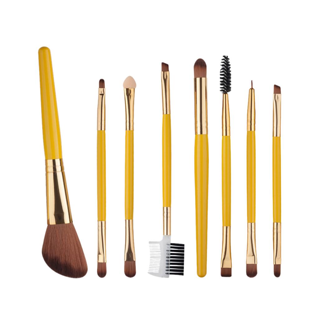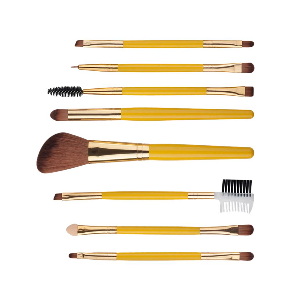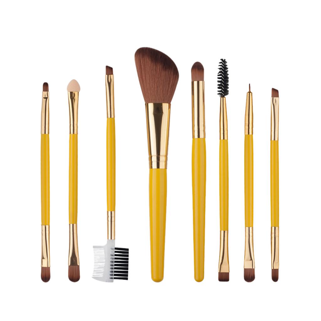 8pcs Powder Foundation Double-End Eyebrow Eyeliner Blush Makeup Brush Yellow