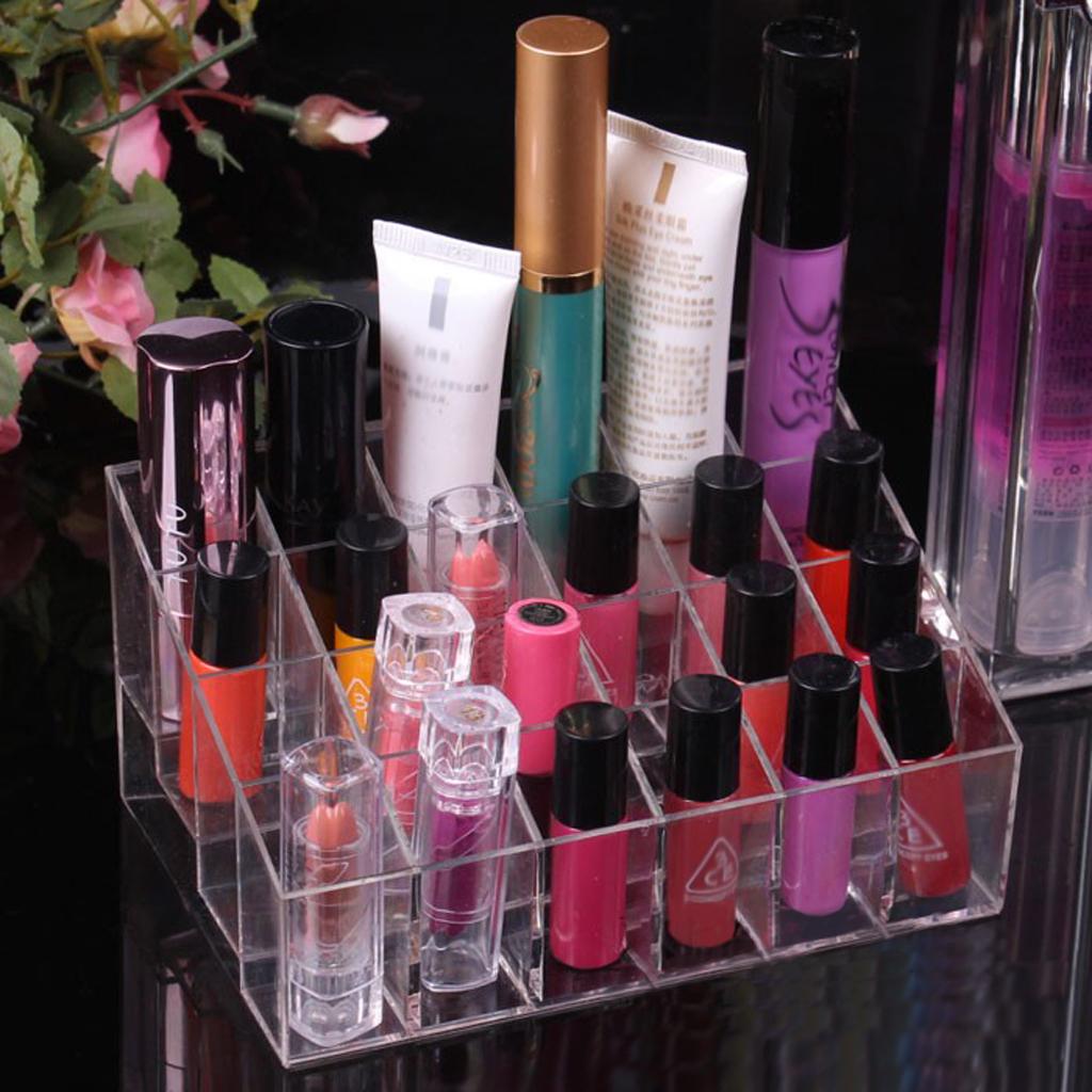 Acrylic 24-Slot Lipstick Stand Holder Mascara Brush Cosmetic Organizer Stand Makeup Beauty Supplies Clear