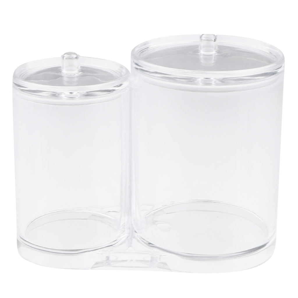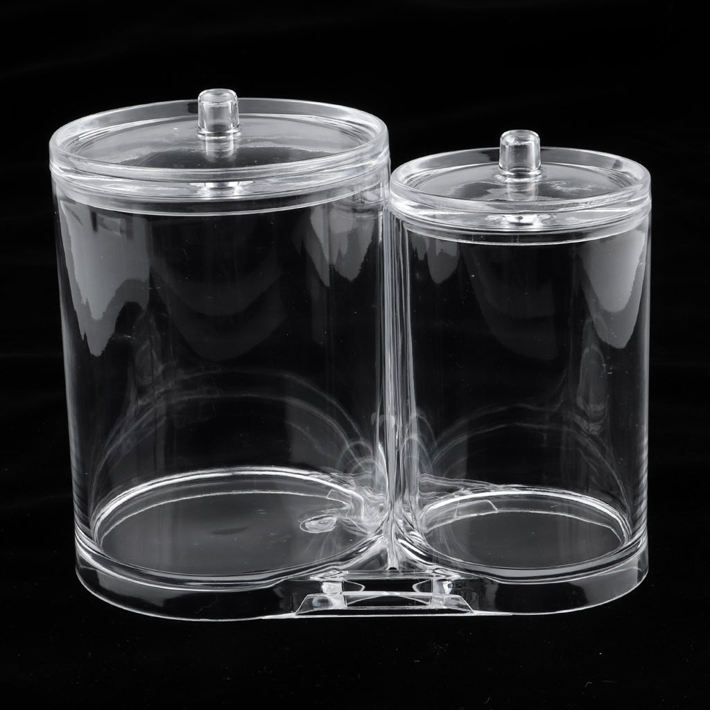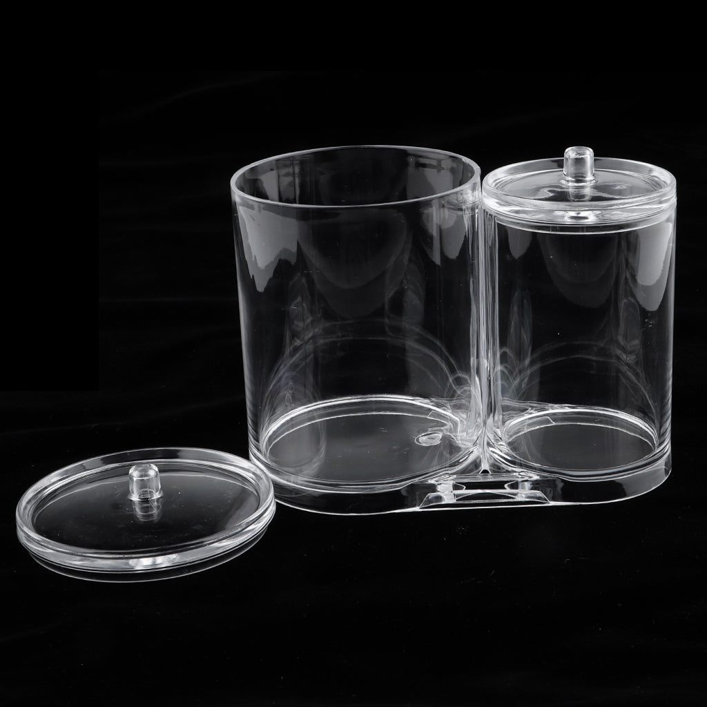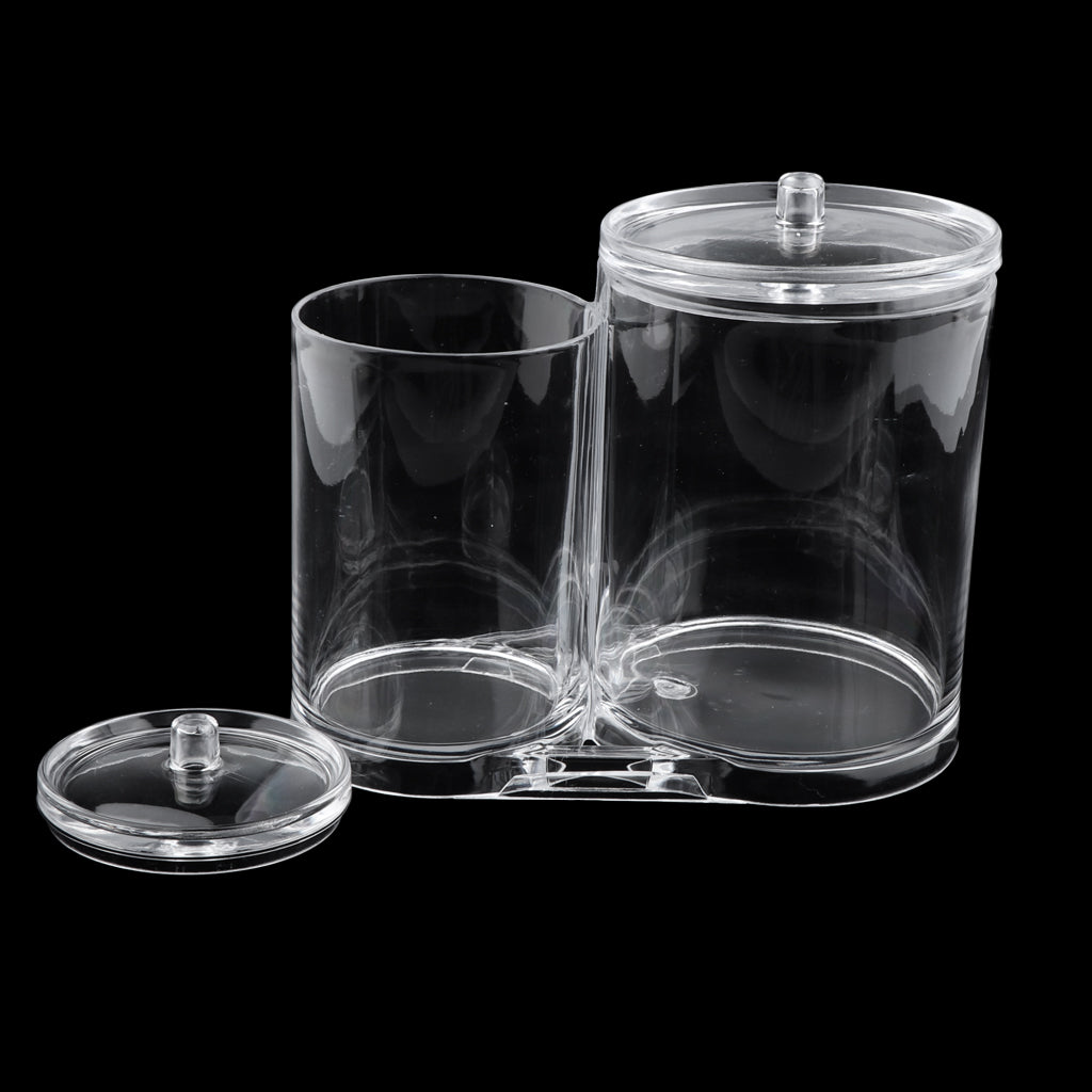 Acrylic Makeup Cotton Pad Holder with Cover 2 Compartment Cotton Ball Swab Organizer Storage Case Jar Container for Makeup Brushes Sponges