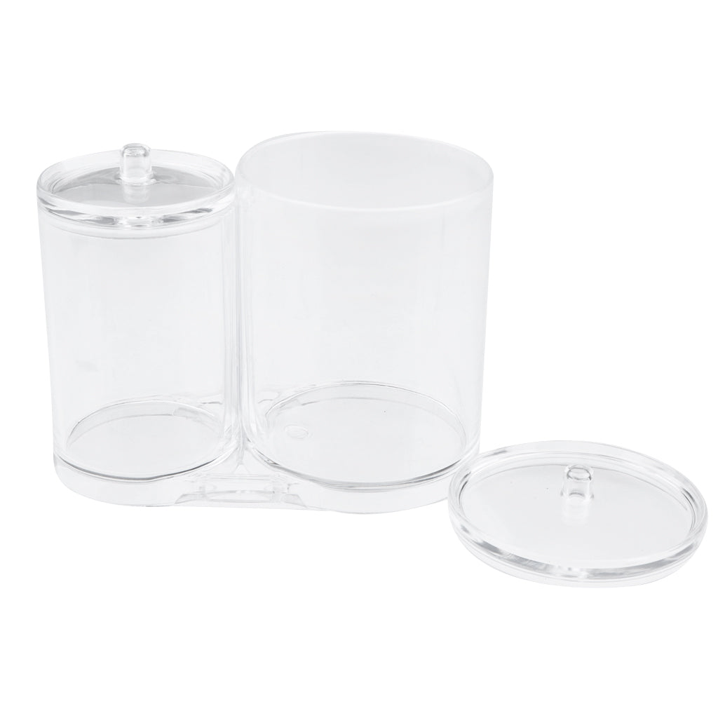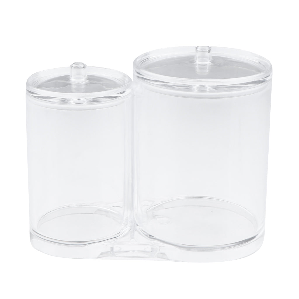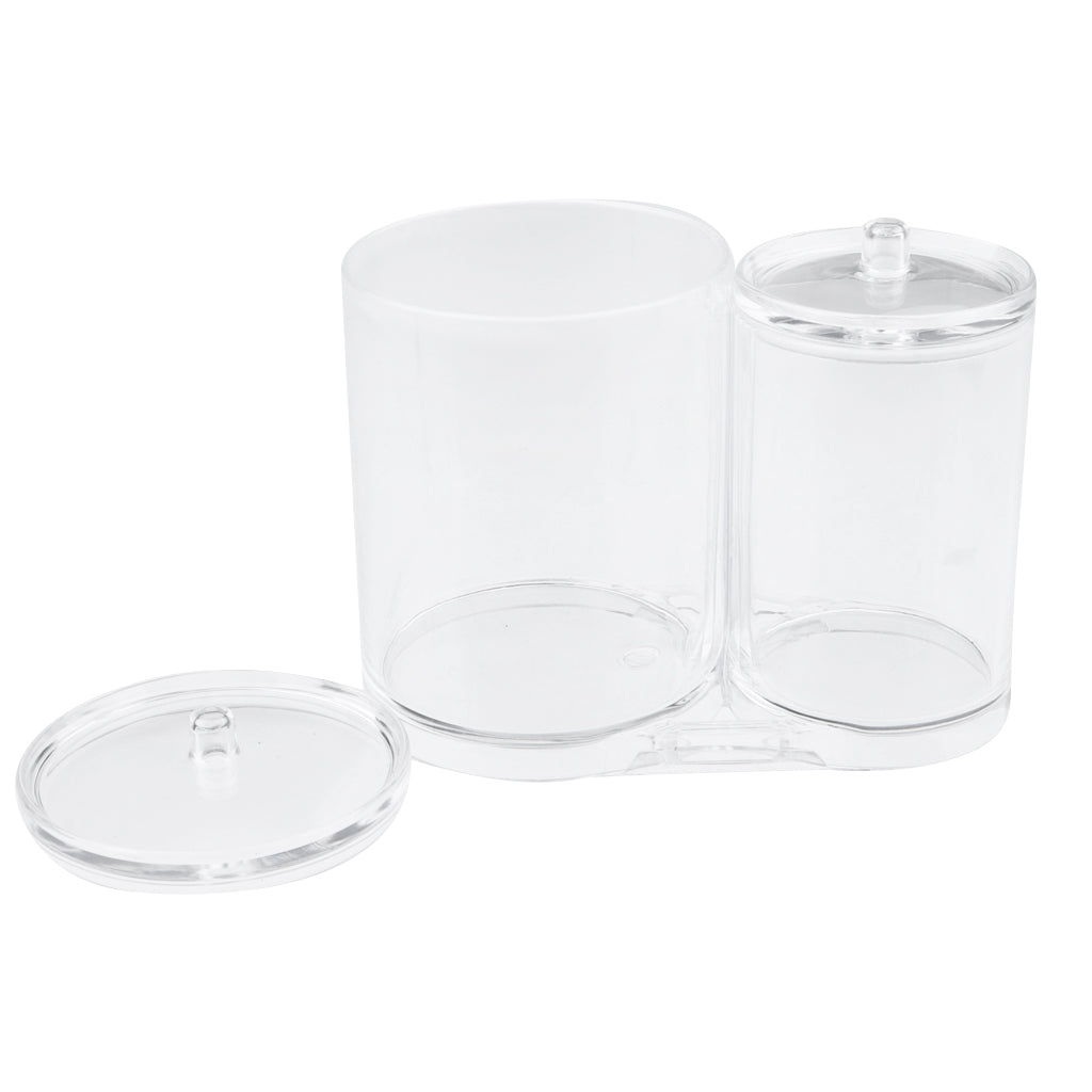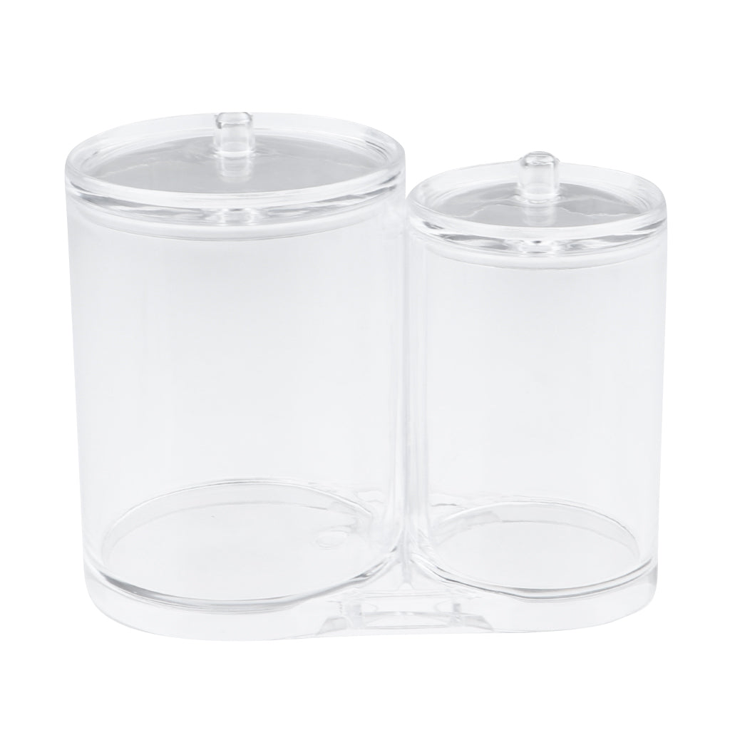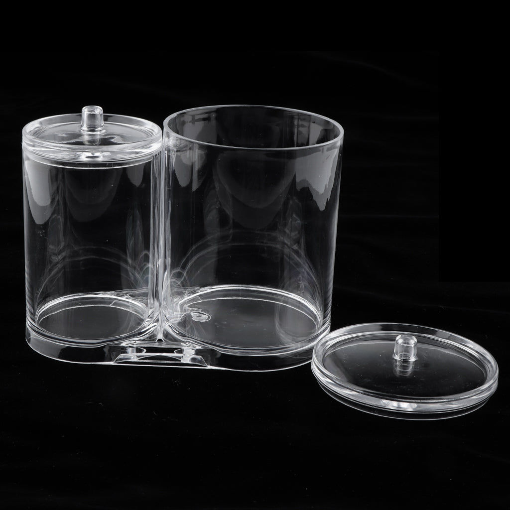 Acrylic Makeup Cotton Pad Holder with Cover 2 Compartment Cotton Ball Swab Organizer Storage Case Jar Container for Makeup Brushes Sponges
