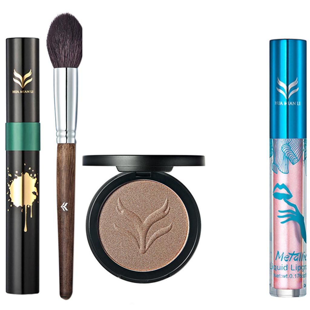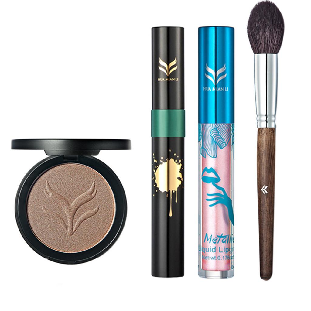 Highlight bronzer, mascara, glitter shimmer lip gloss and makeup brush of makeup kit, meet all your daily needs
