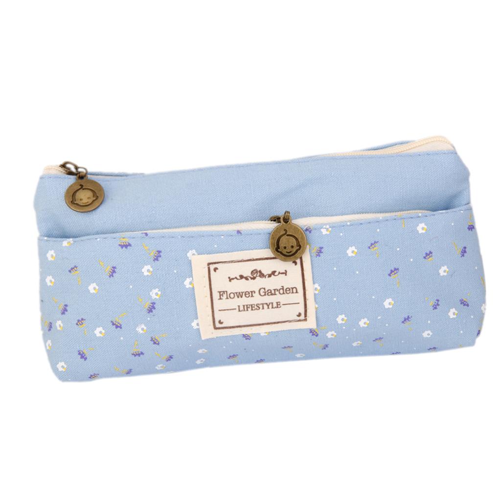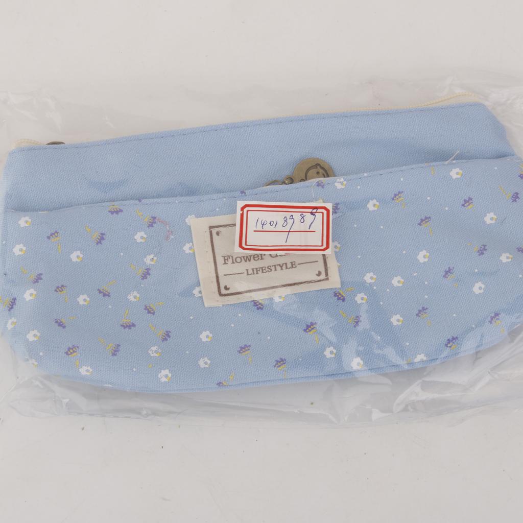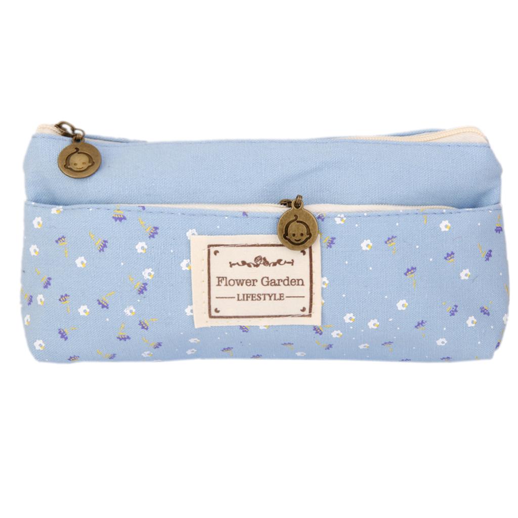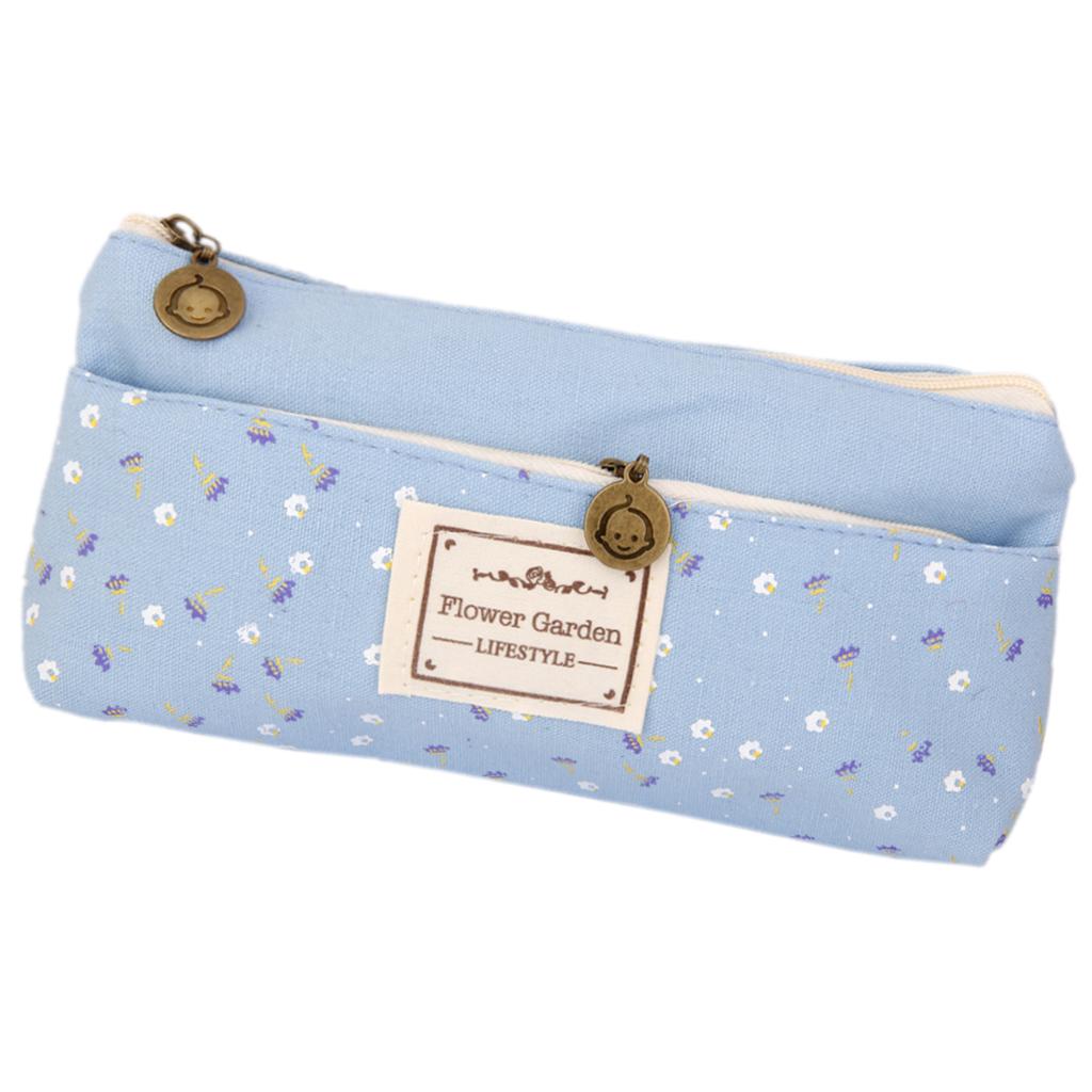 Flower Canvas Pencil Case Cosmetic Makeup Coin Pouch Zipper Bag Purse Blue